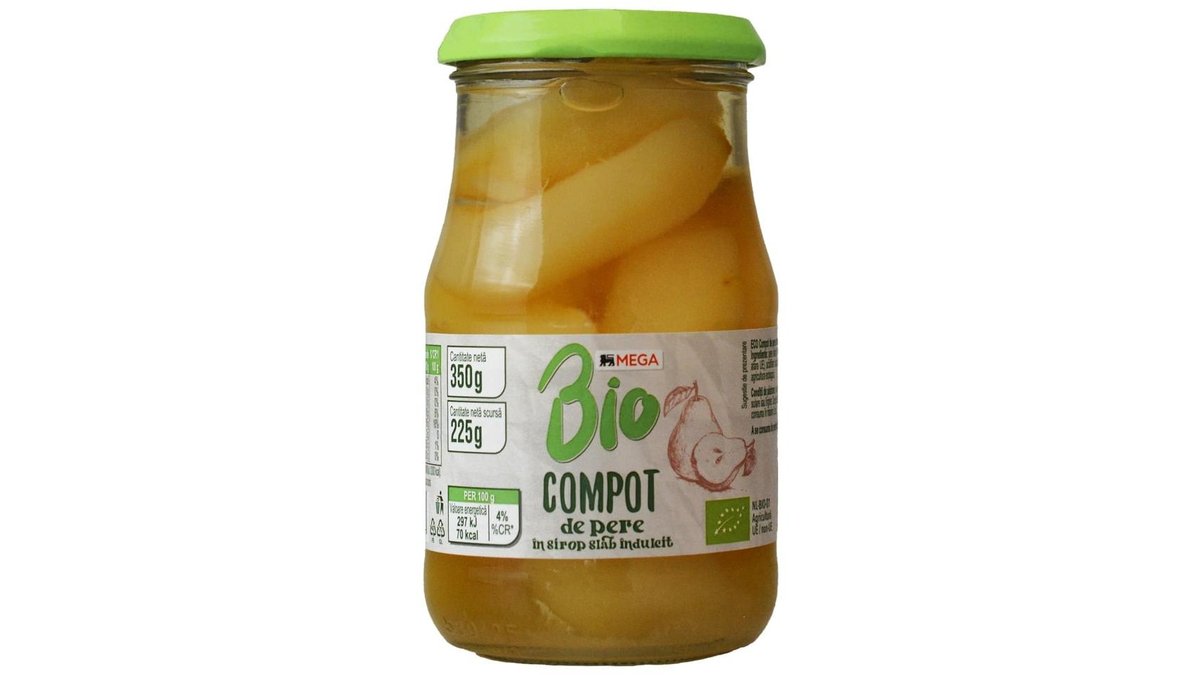 MEGA Compot de pere bio in sirop slab indulcit 350g