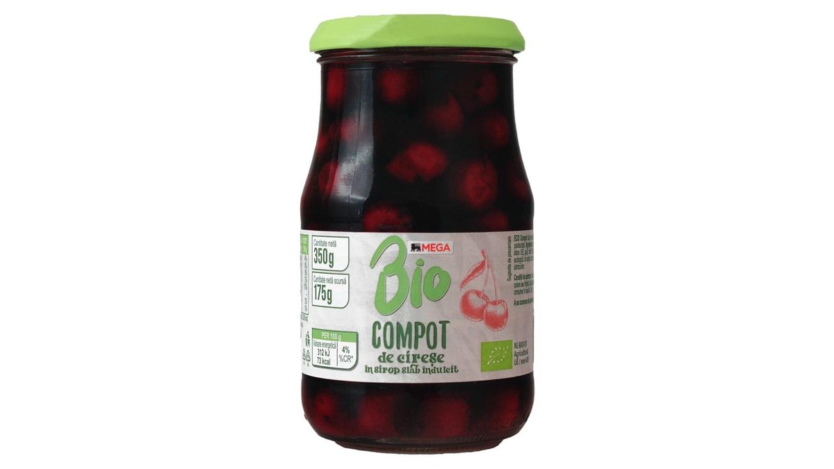 MEGA Compot de cirese bio in sirop slab indulcit 350g
