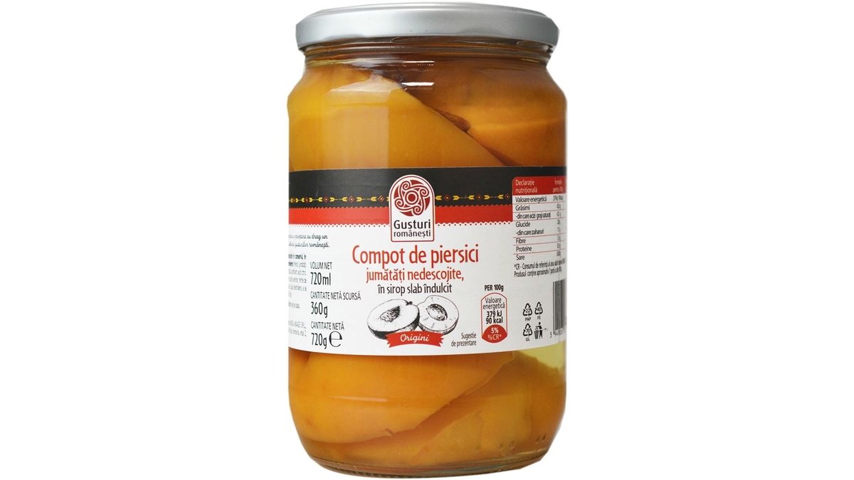 Gusturi romanesti Compot de piersici jumatati in sirop slab indulcit 700g