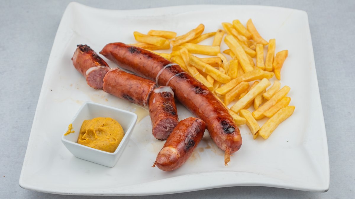 Kobasice Aloha 300 grama punjene kackavaljem prilog pomfrit i senf