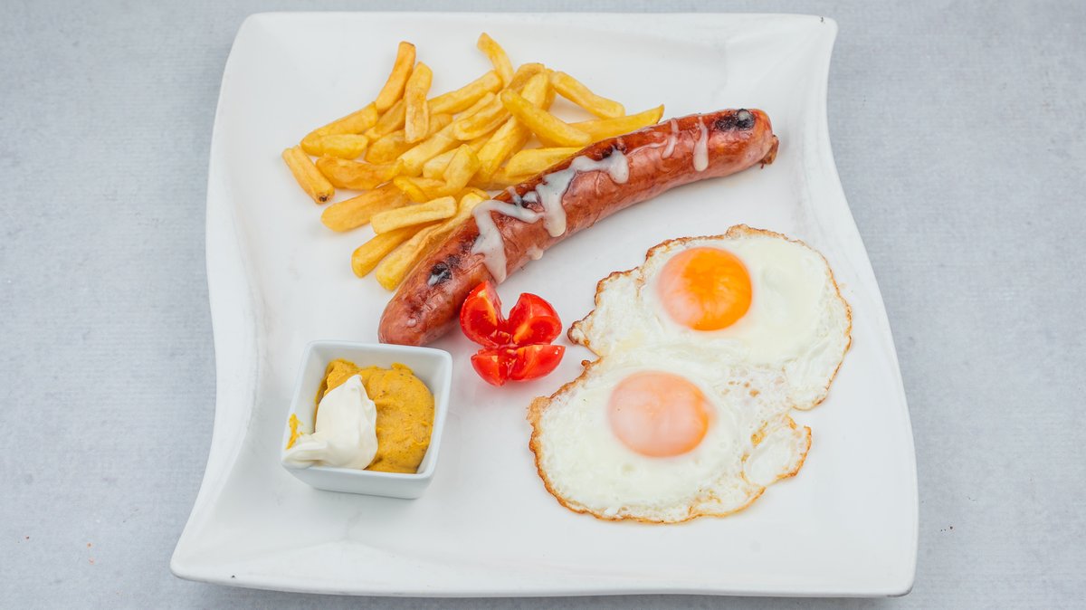 Aloha ful dorucak kobasica punjena kackavaljem i dva jaja na oko prilog senf i majonez