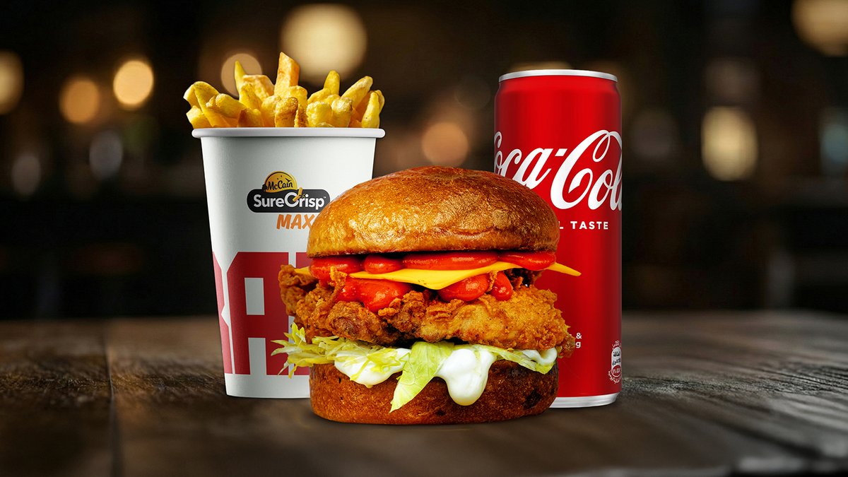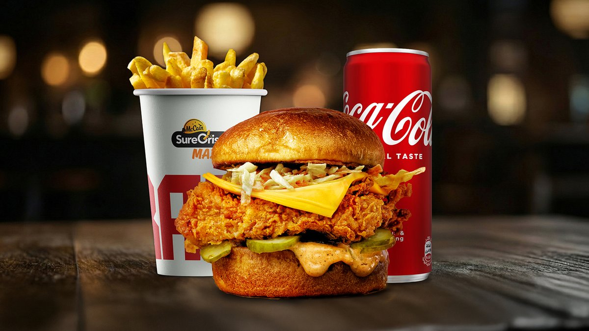 Original chicken burger + pomfrit + Coca cola 0.33l