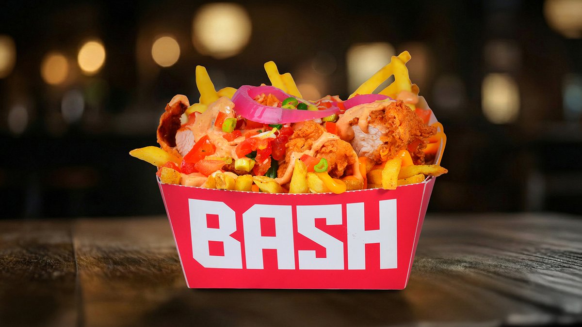 Pomfrit, topljeni cheddar, big smash sos, crispy piletina, ukiseljeni luk, tomato salsa
