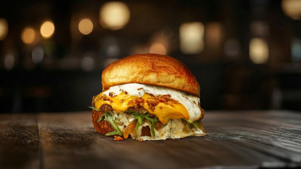 Brioche pecivo, 100% junetina, cheddar, bacon mayo sos, kiseli krastavci, sloppy meat kugla, hrskavi luk