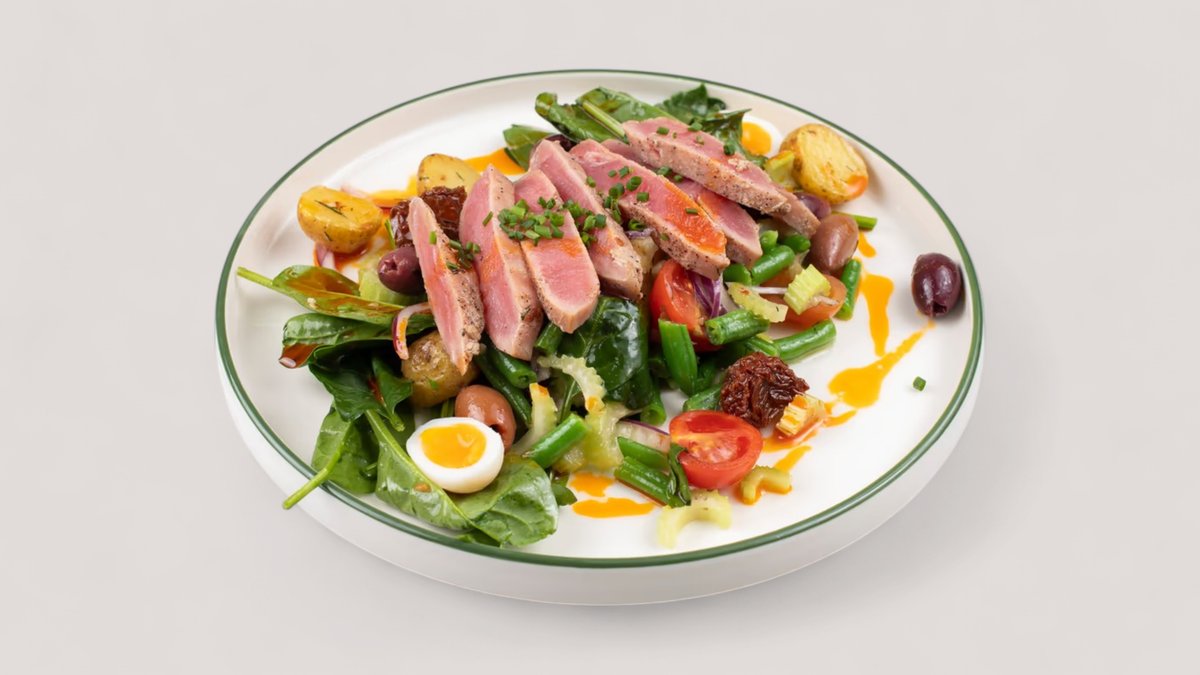 Nicoise with fried tuna and young potato Нисуаз с обжаренным тунцом и молодым картофелем