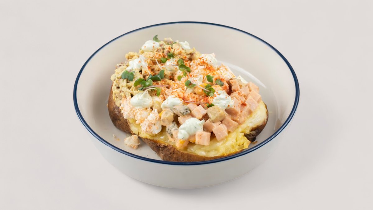 Twice-baked potato with smoked chicken and turkey ham Крошка-картошка с копченой курицей и ветчиной из индейки