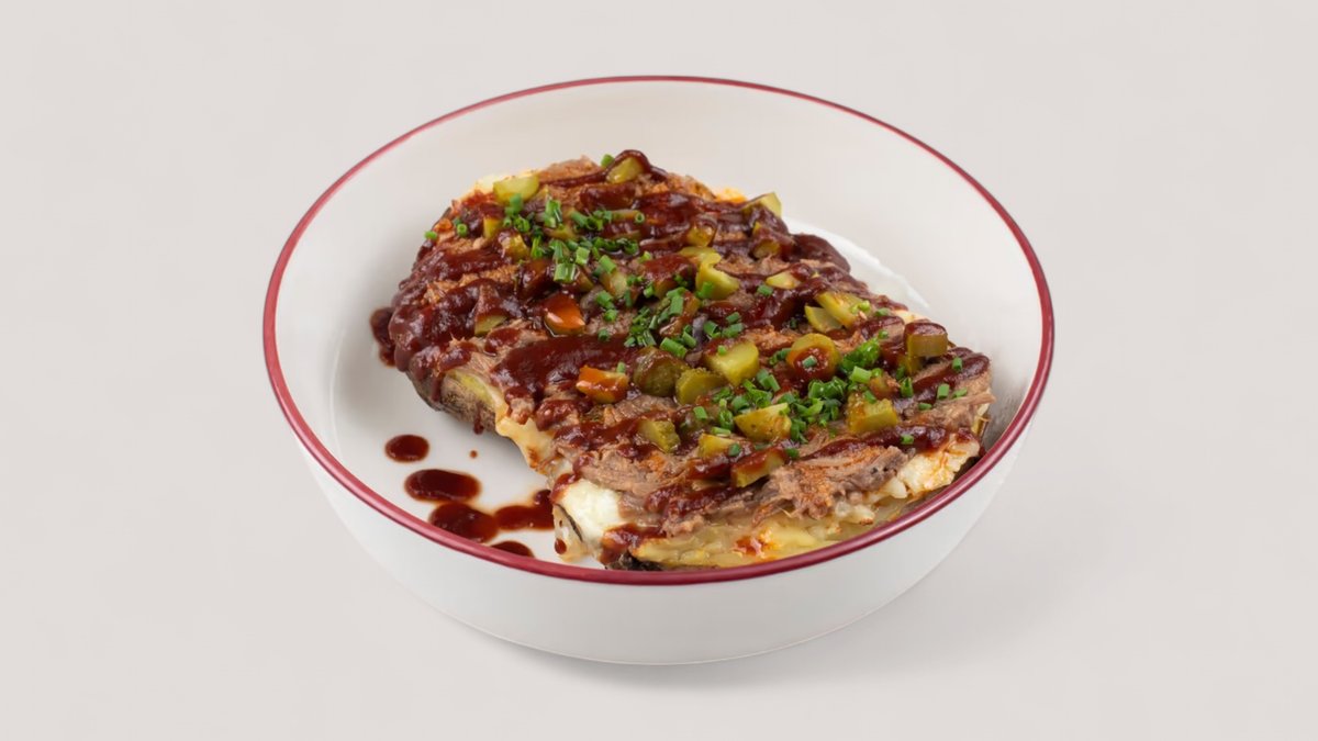 Twice-baked potato with pulled beef Крошка-картошка с рваной говядиной