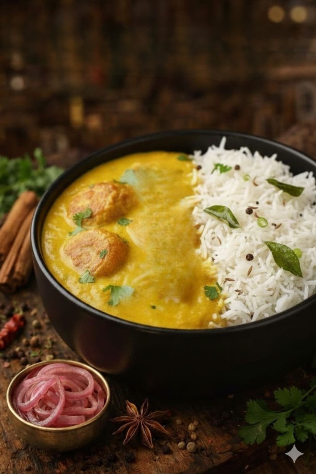 Jogurt based curry and rice infused with indian flavours