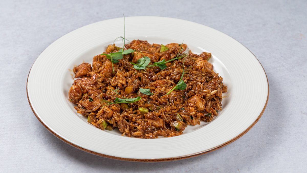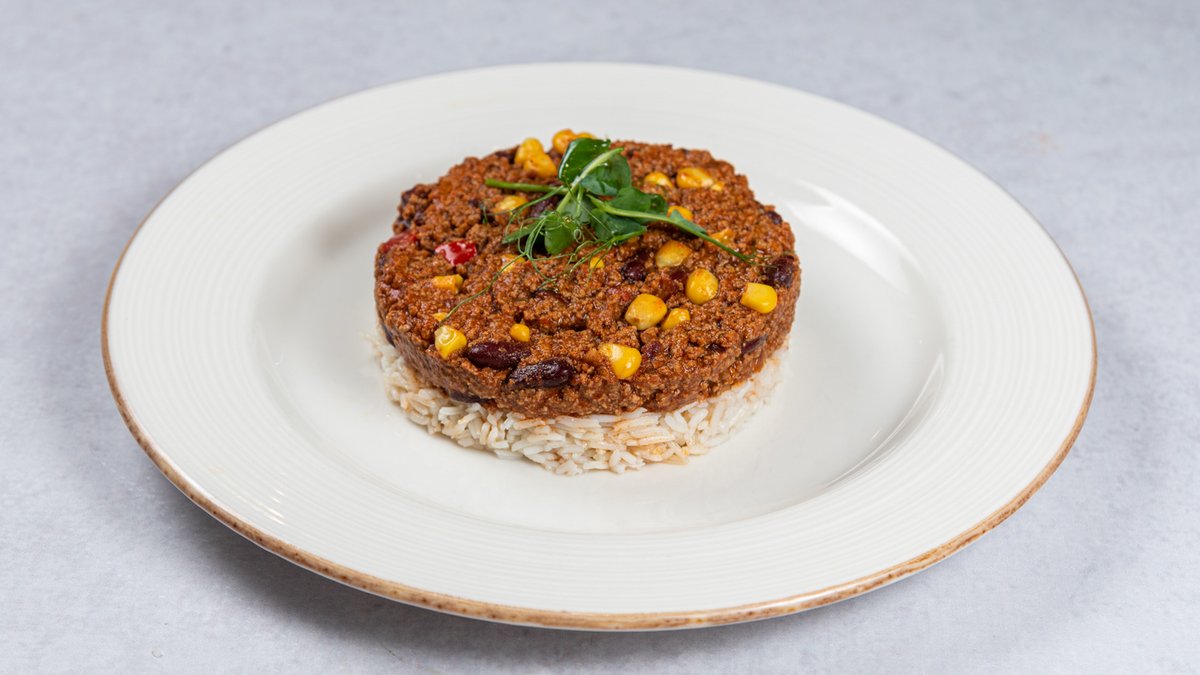 P:43g | M:6g | Uh:66g | 490 kCal | Juneći but 150g, crveni pasulj, kukuruz, basmati pirinač, paprika, paradajz