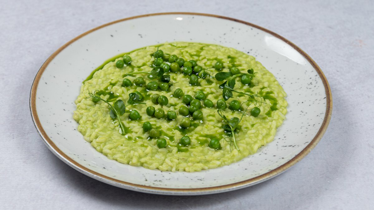 P:20g | M:44g | Uh:70g | 756 kCal | Grašak, vlašac, parmezan, puter, pirinač arborio