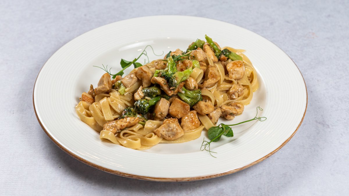 P:65g | M:25g | Uh:69g | 761 kCal | Pileći file 200g, brokoli, puter, parmezan, taljatele