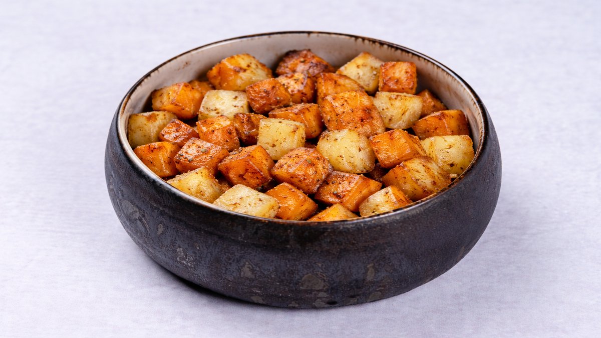 P:3g | M:5g | Uh:39g | 213 kCal | Zapečeni batat i krompir sa ruzmarinom i belim lukom