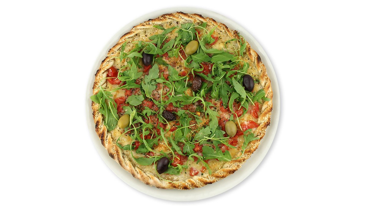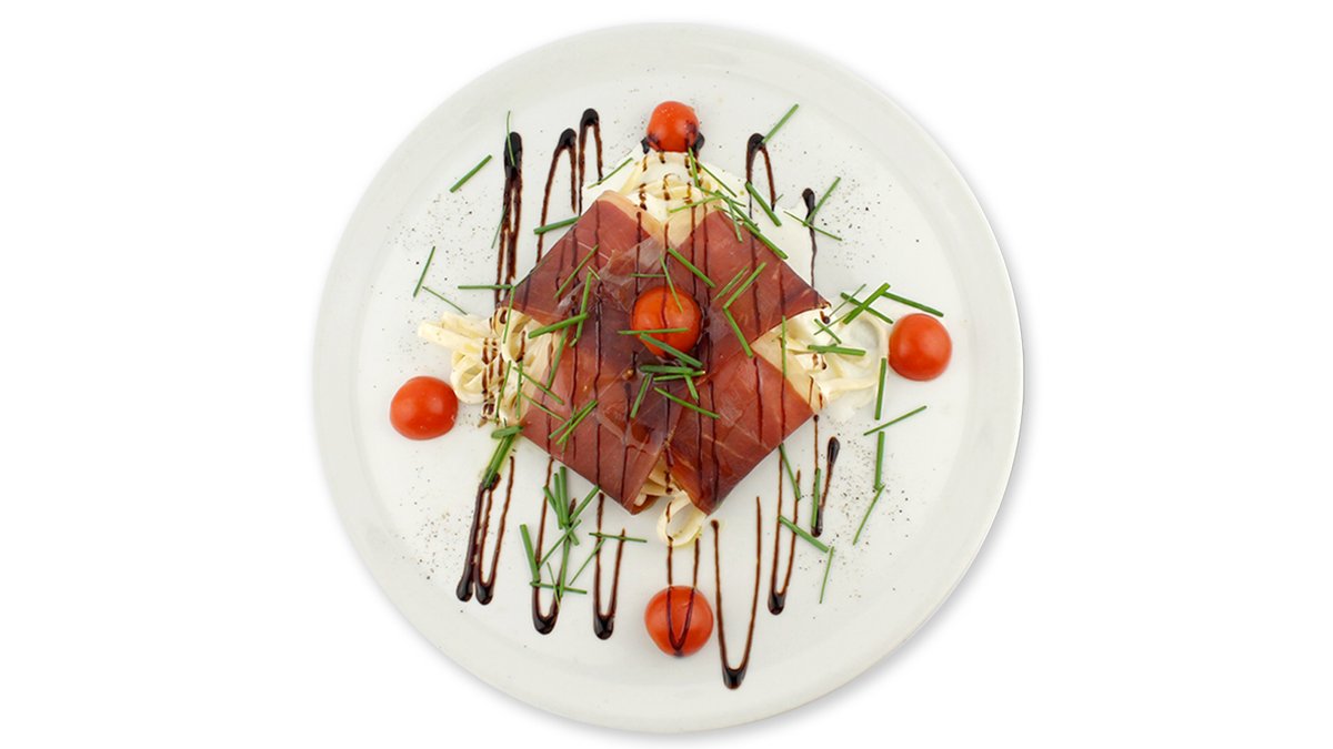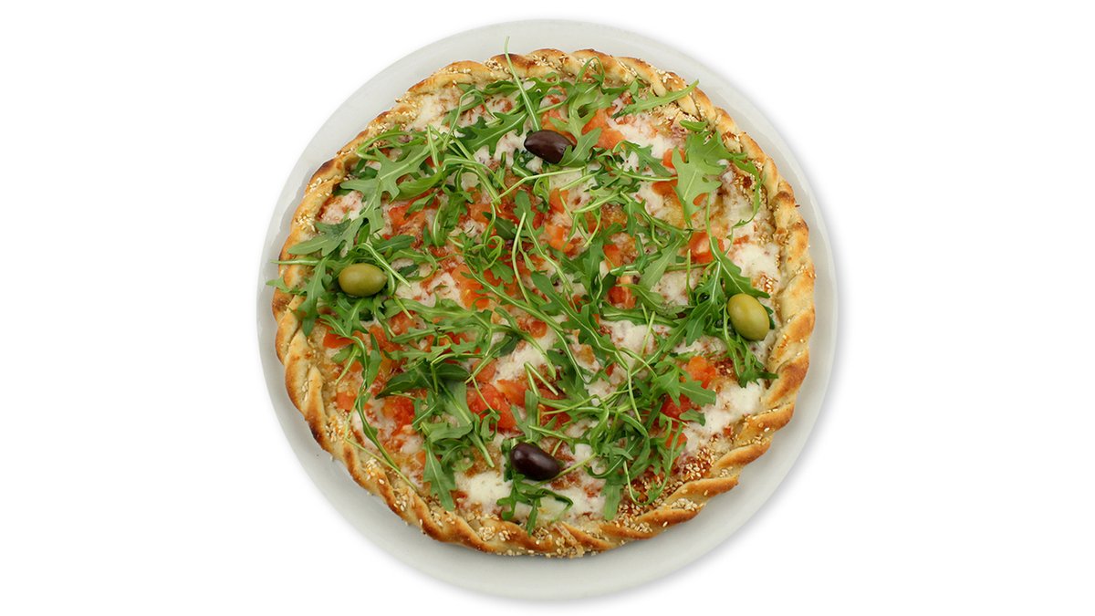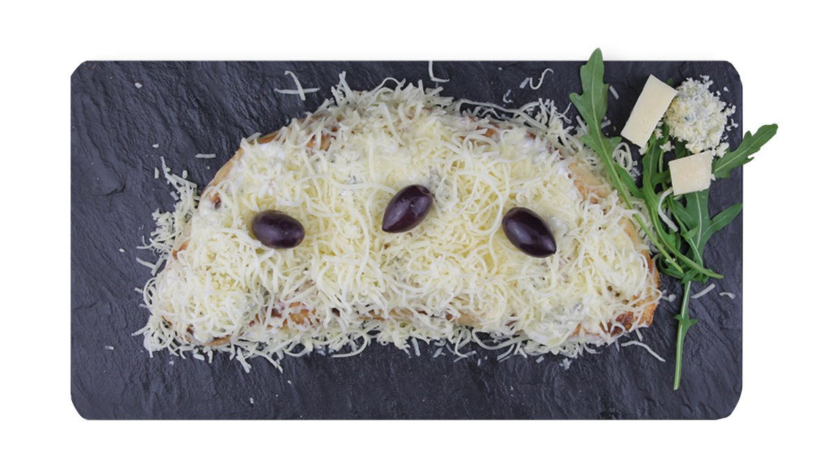 Maslinovo ulje, paradajz, njeguški pršut, praška šunka, sir, šampinjoni, pavlaka masline, parmeza