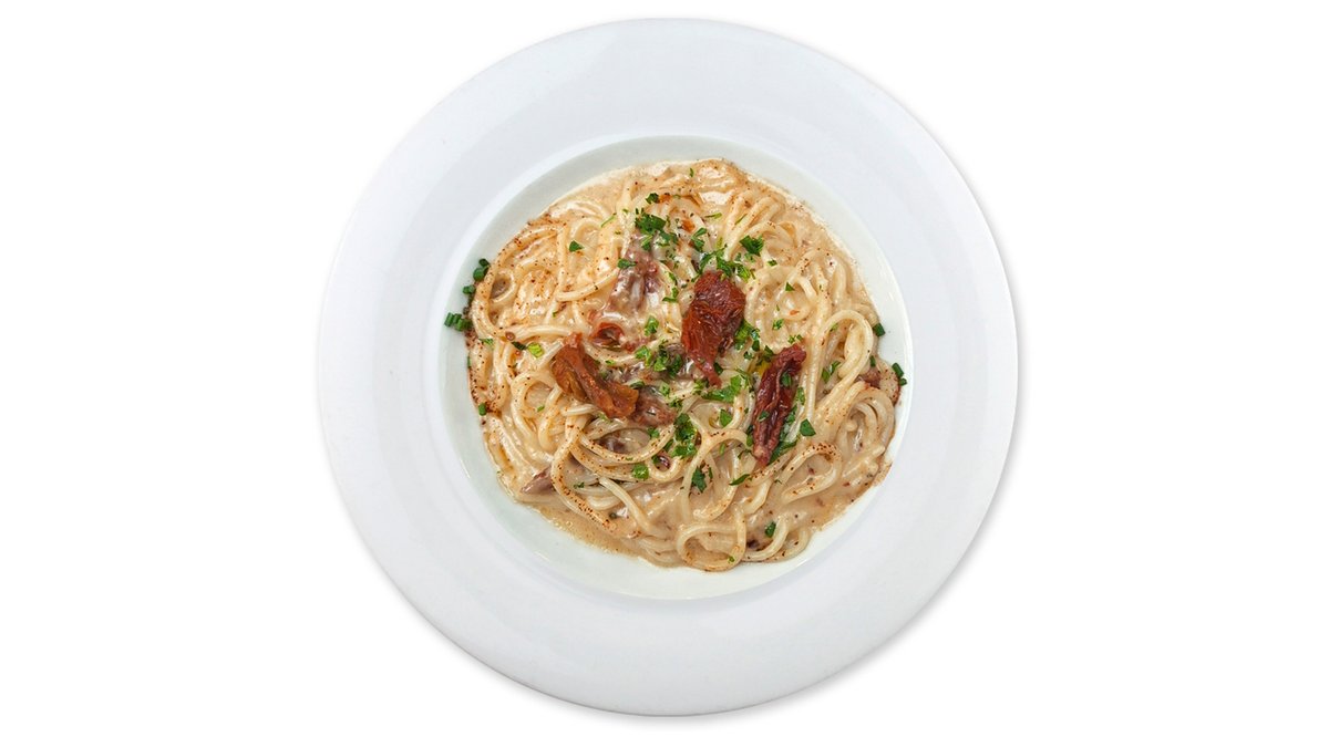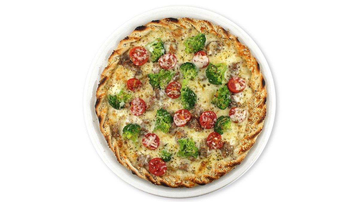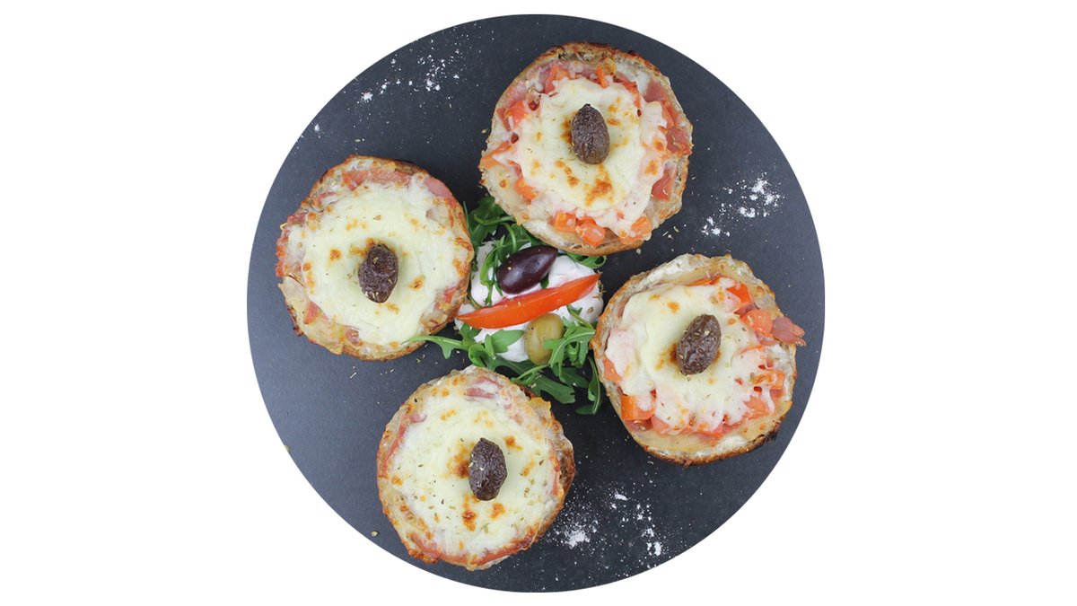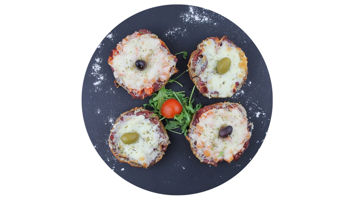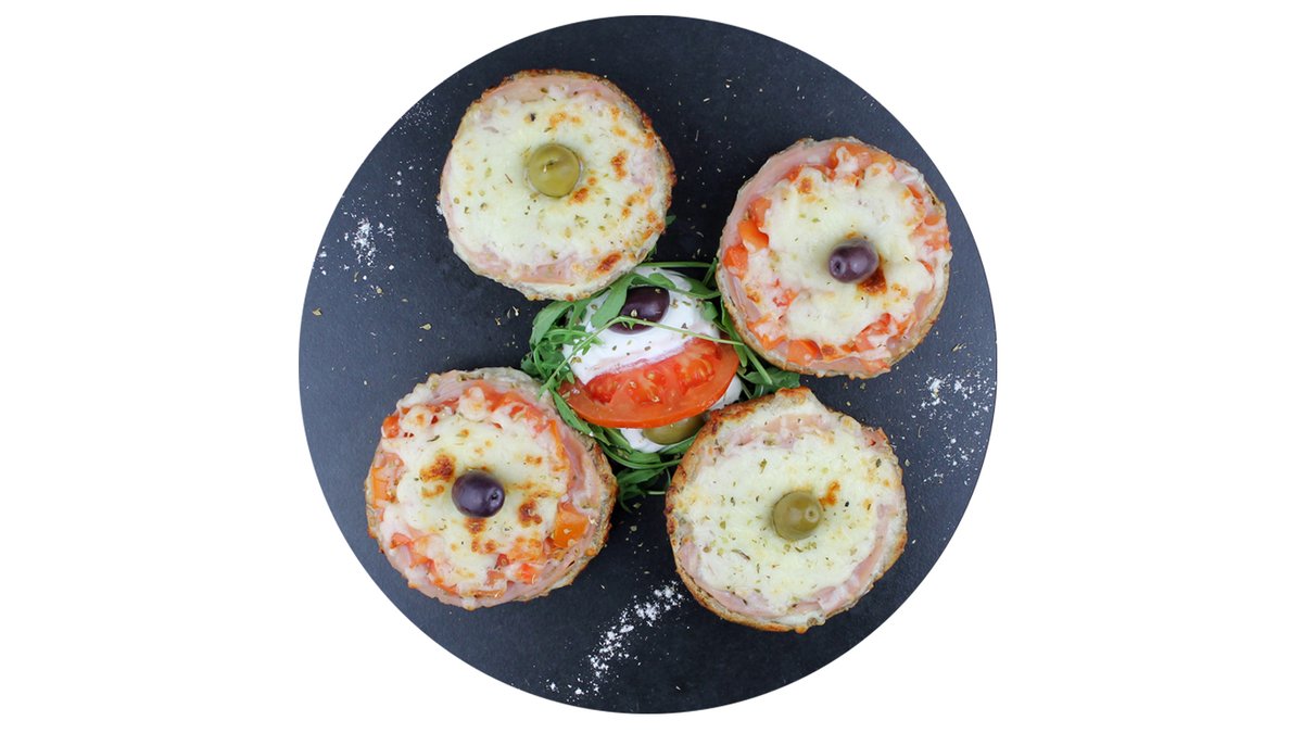 Maslinovo ulje, paradajz, njeguški pršut, praška šunka, sir, šampinjoni, pavlaka masline, parmeza