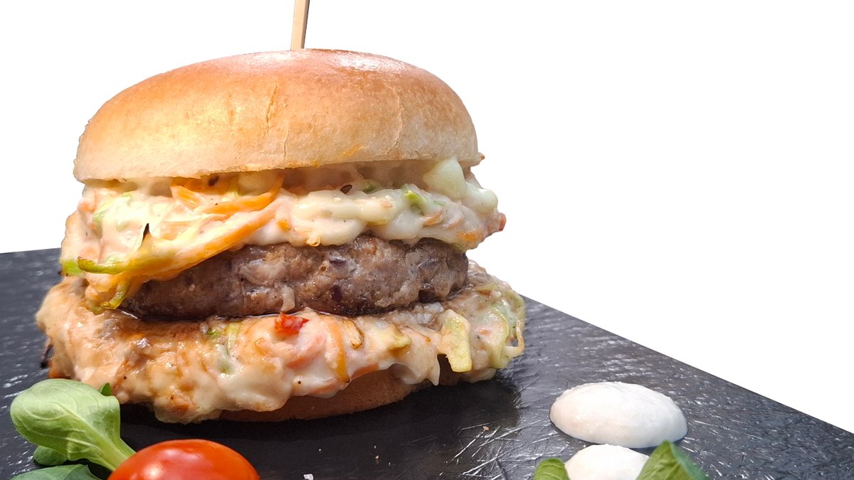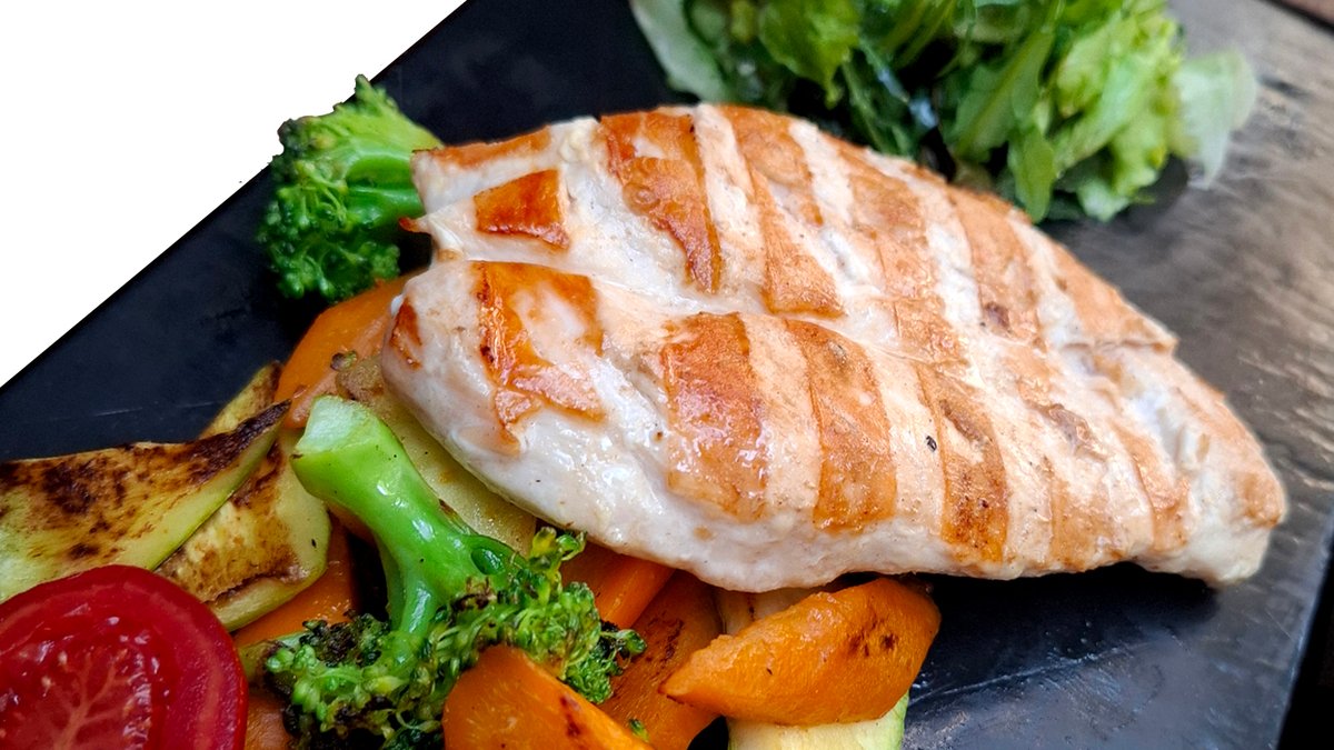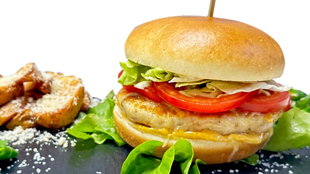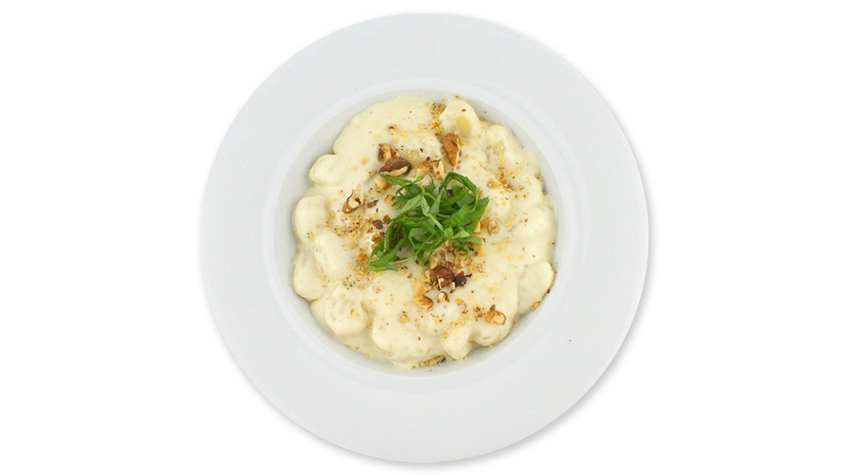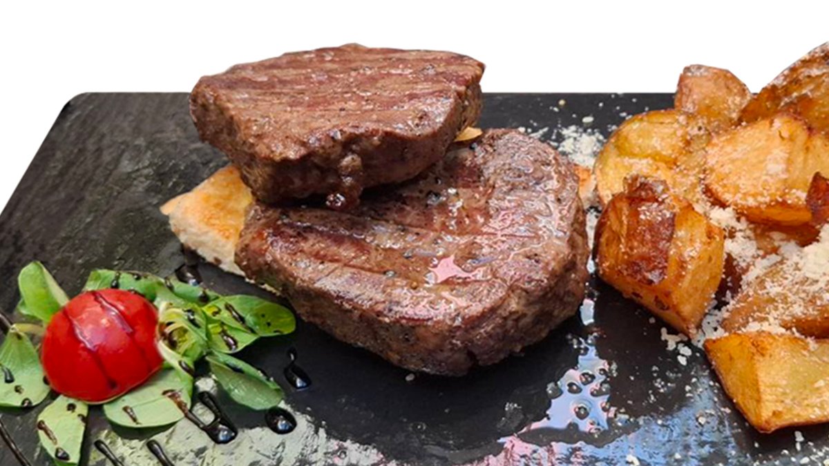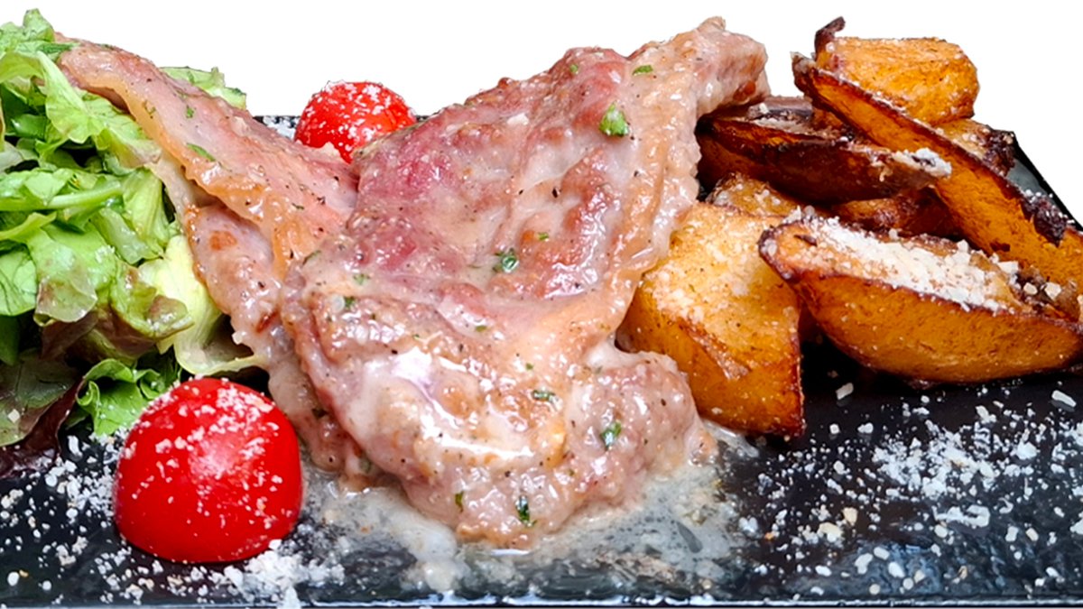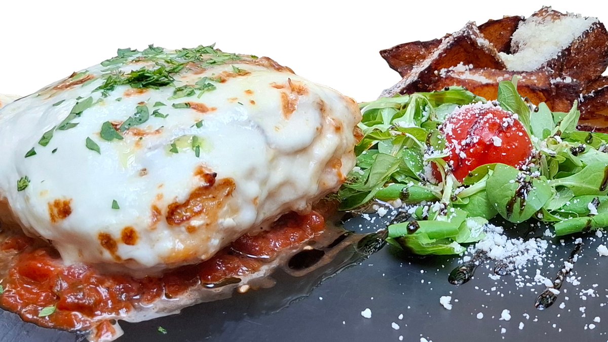 Pileći file punjen Njeguškim pršutom, Gaudom, gorgonzolom, gratiniran mozzarella sirom u Botako sosu, /sa prilogom po izboru