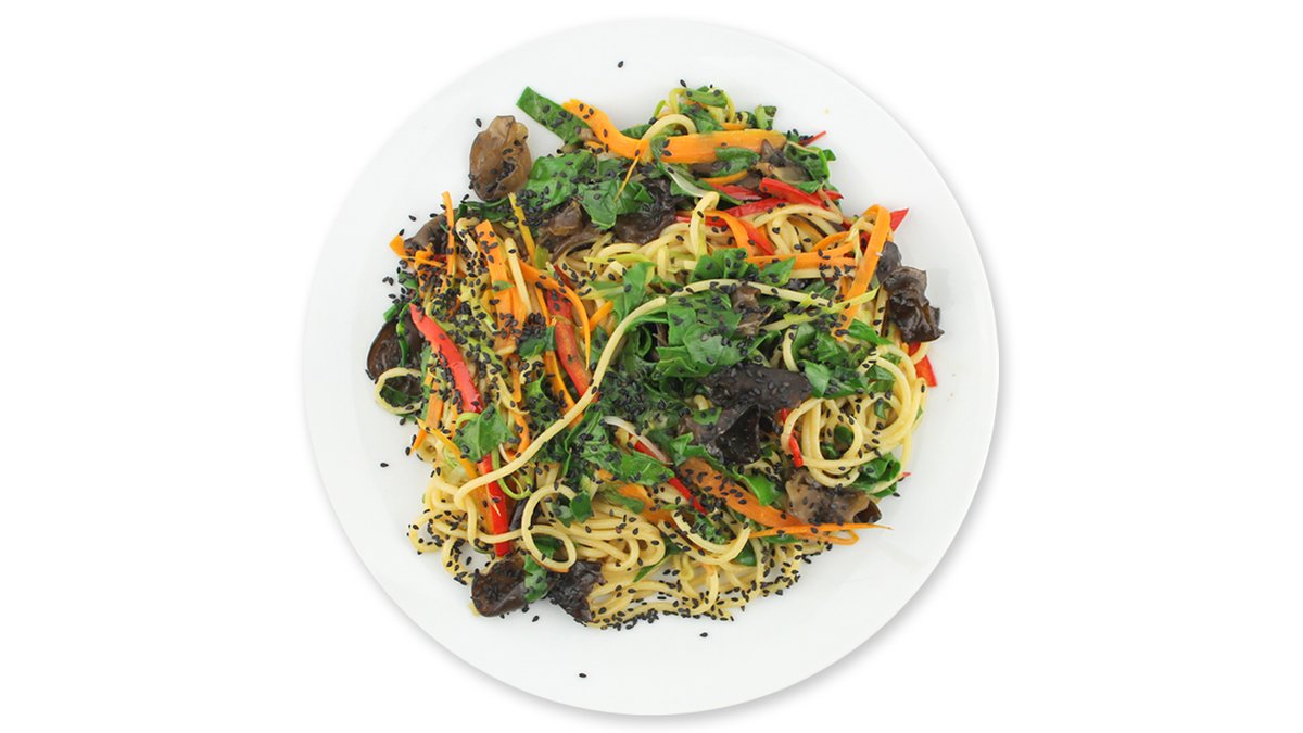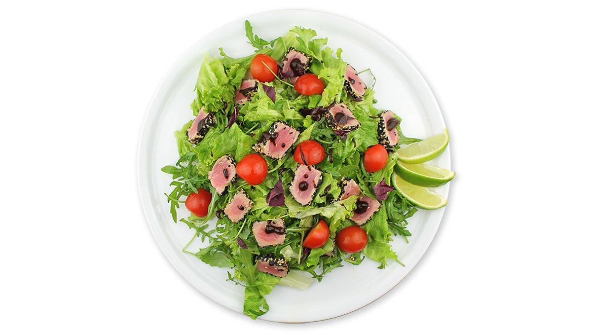 Zelena salata, čeri, beli i crni susam, radič, Teriyaki sos, limeta, rukola