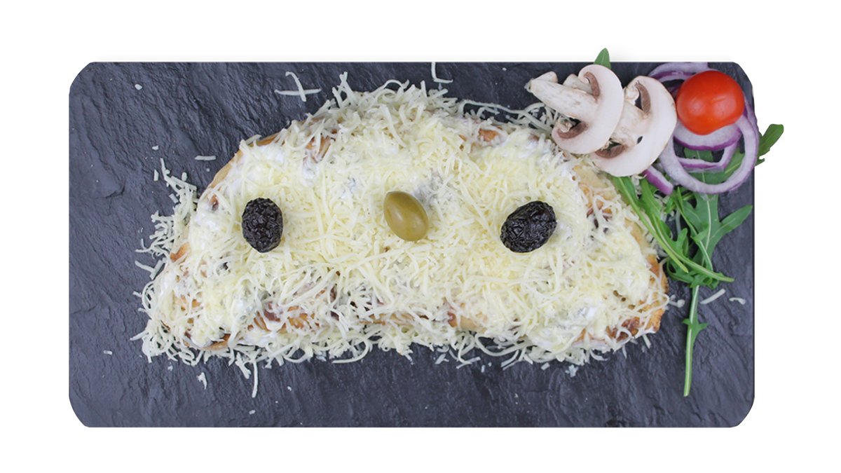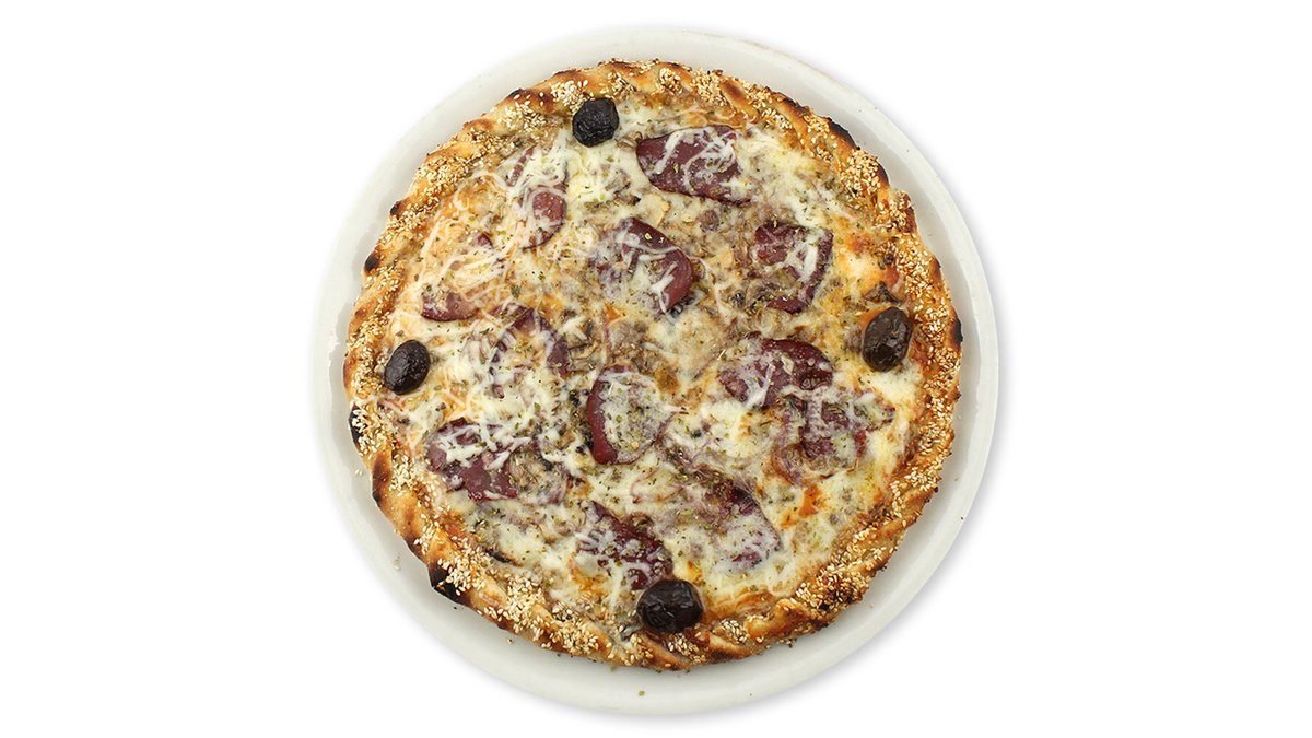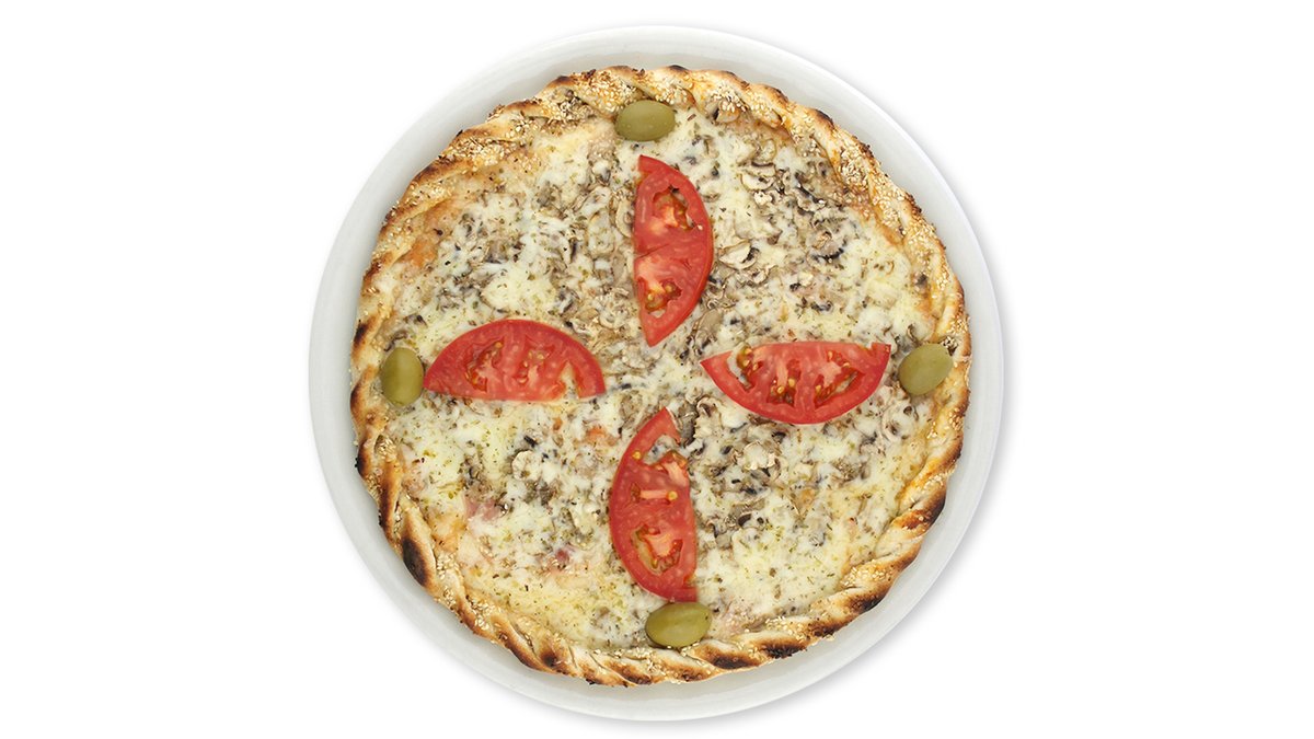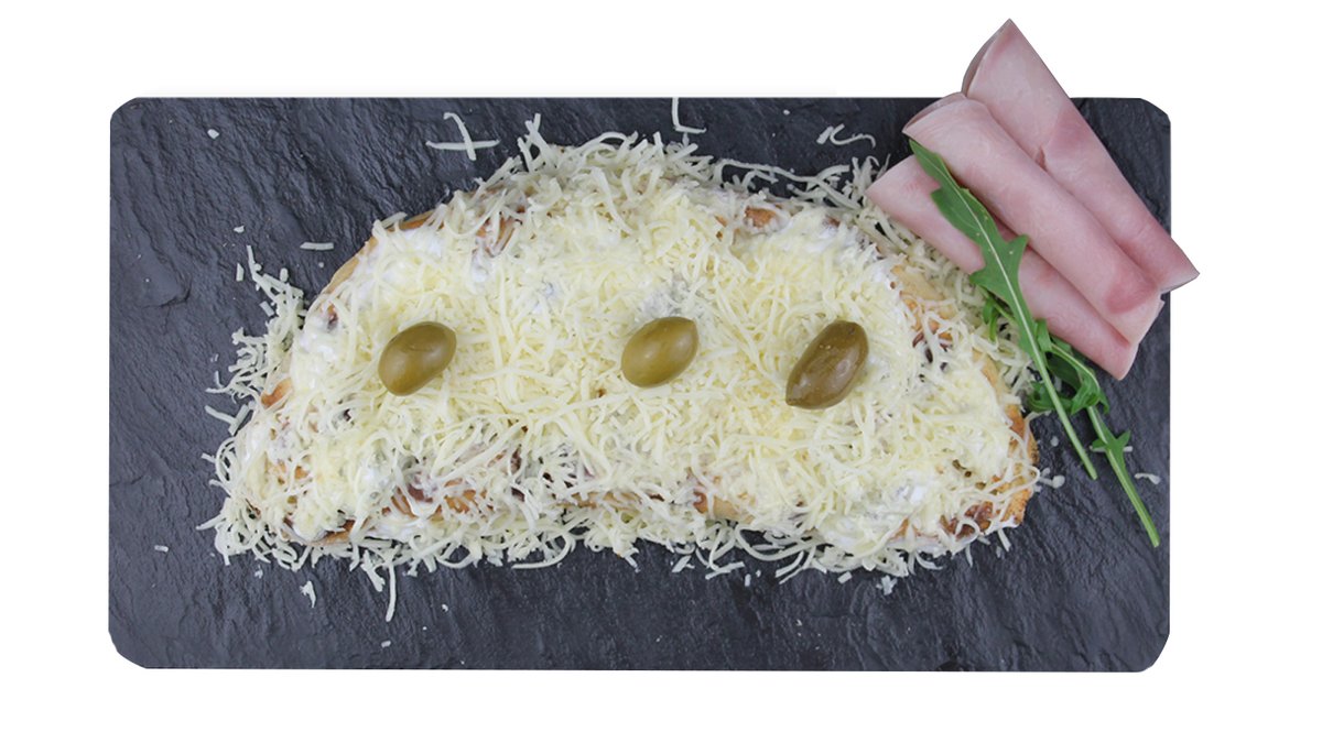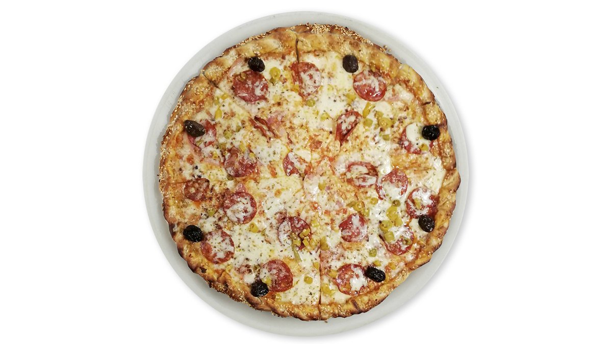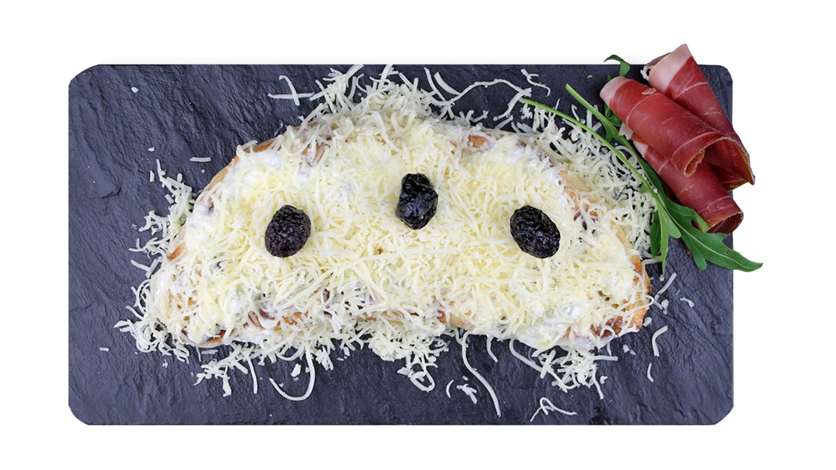 Pelat, sir, praška šunka, paradajz, šampinjoni, masline