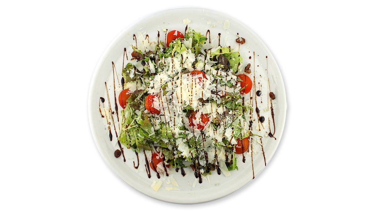 Mix zelenih salata, čeri, parmezan, krutoni, Cezar sos, redukovani aceto