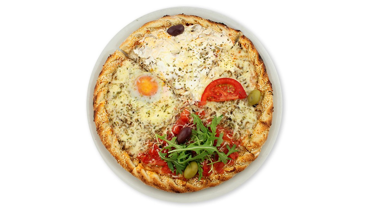 Pelat, sir, praška šunka, kulen, pršut, pavlaka, šampinjoni, paradajz, rukola, masline, jaje