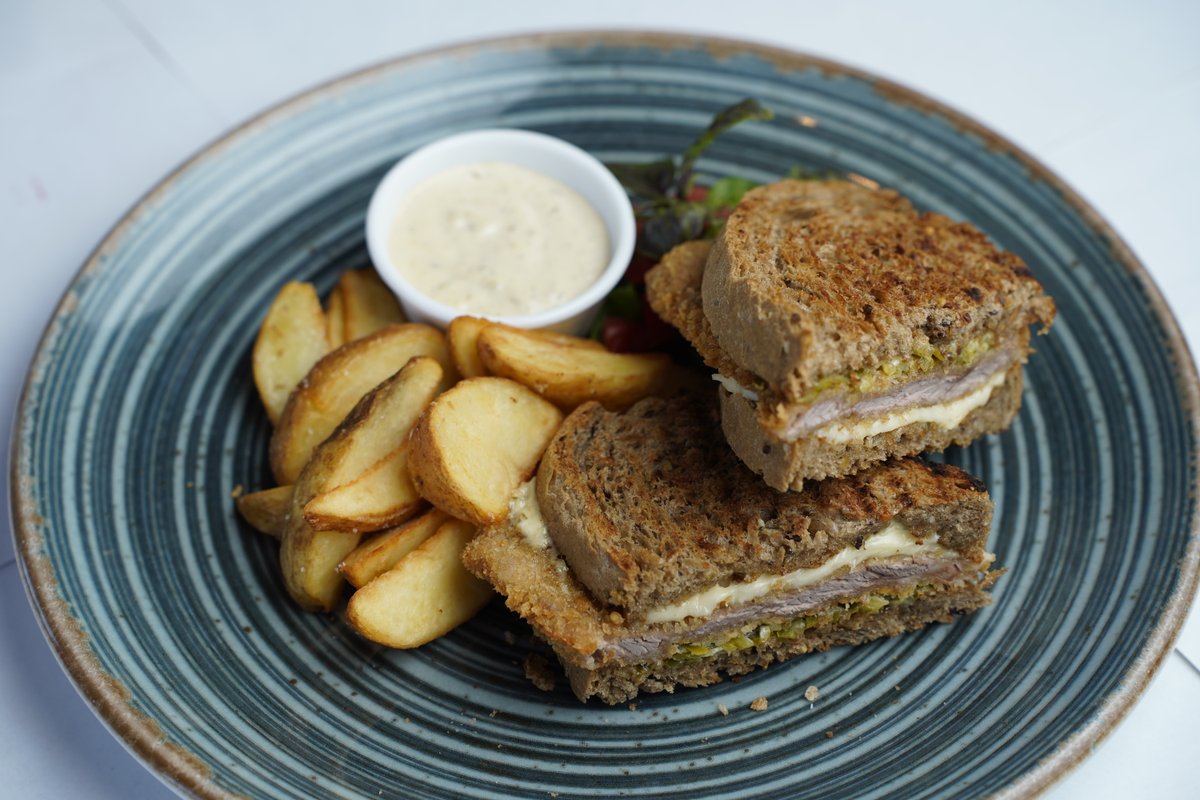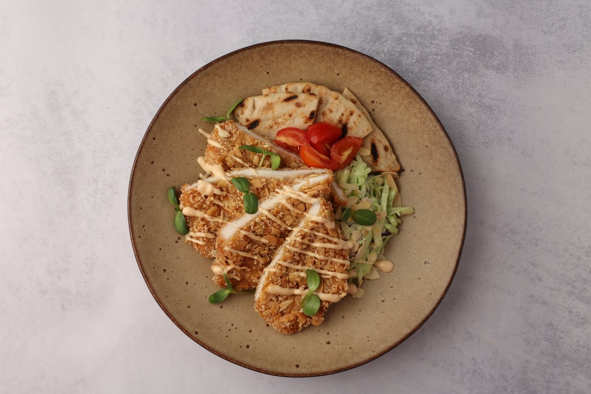Kajgana sa ćurećim prsima uz pohovani kačkavalj, topli sendvič i kolosov salatu
