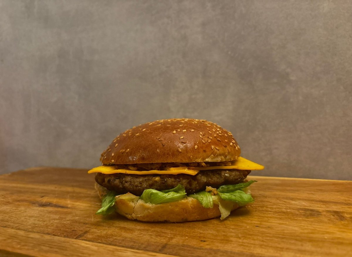 100% Juneće meso ,cheddar sir ,kiseli krastavac, burger sos , paradajz ,hrskavi luk , ice - berg salata.