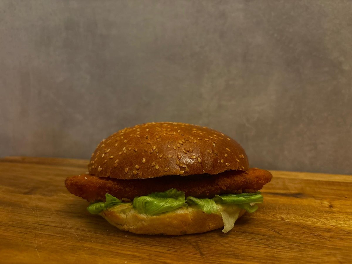 Riblji filet , kiseli krastavac, posni burger sos ( posni ) , luk, paradajz,ice - berg salata.