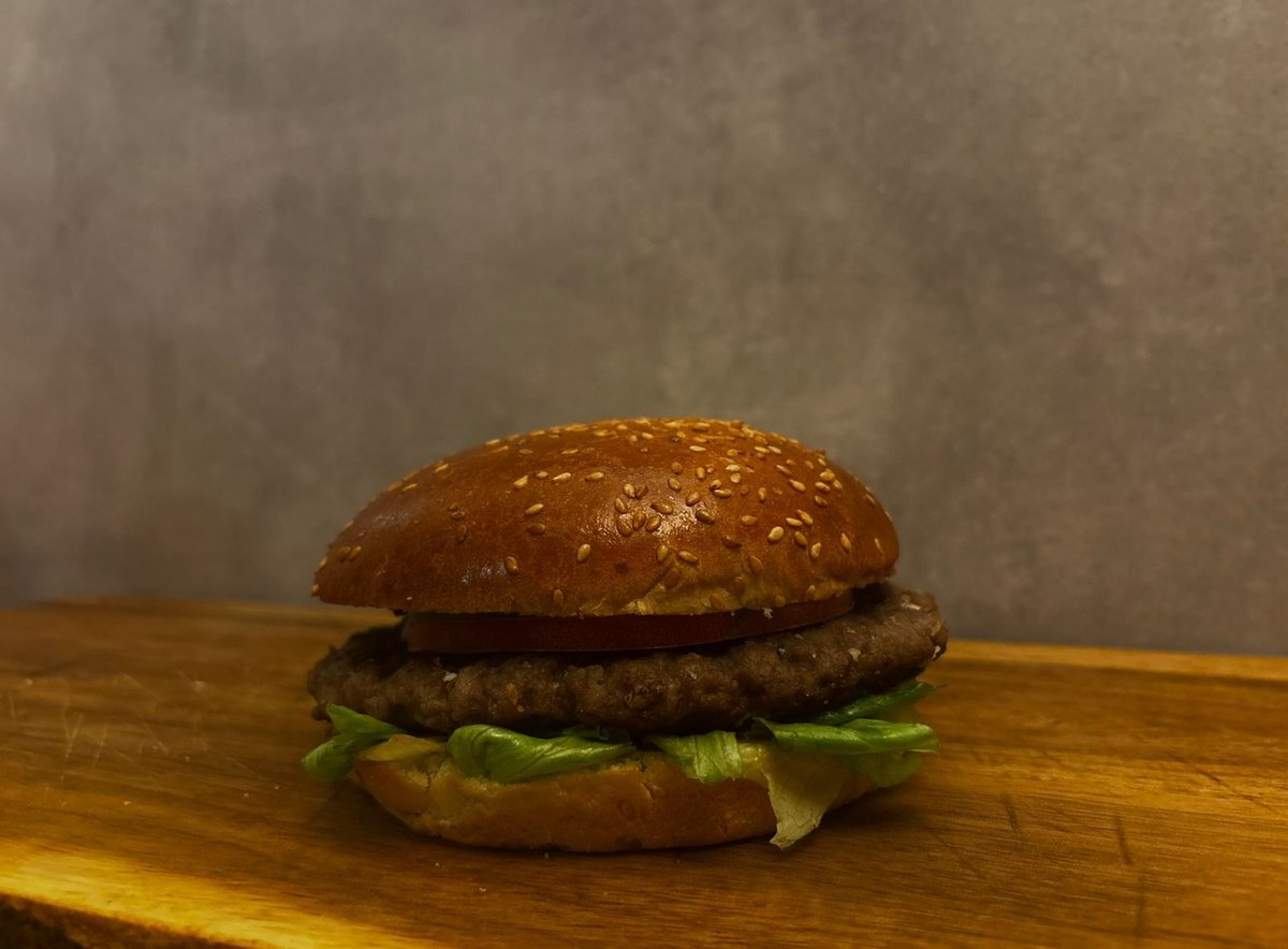 100% Juneće meso ,slanina , kiseli krastavac, burger sos , luk, paradajz, cheddar - sir ,ice - berg salata.