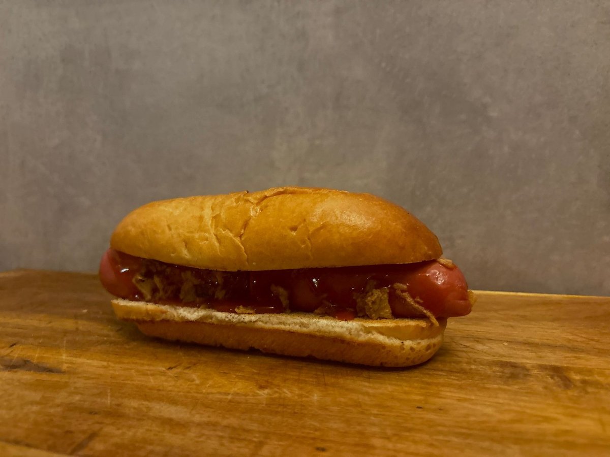 Viršla, kiseli krastavac, hrskavi luk , senf , kečap