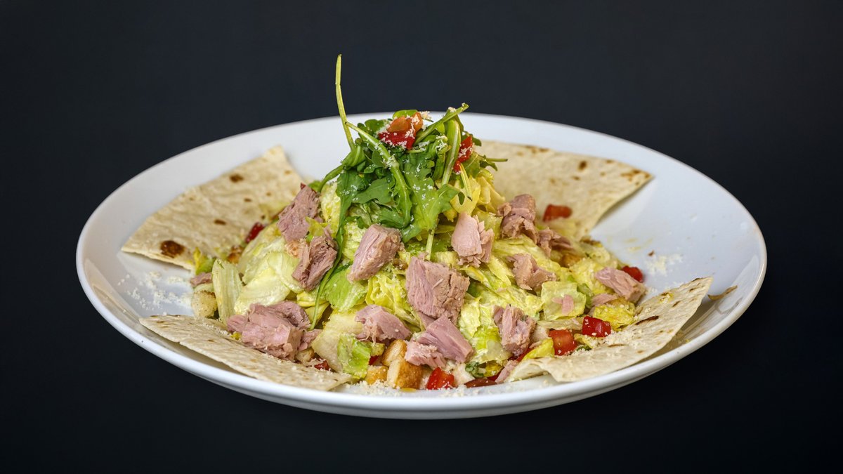 Tuna u maslinovom ulju, parmezan, miks zelenih salata, mozzerella listići, kockice paradajza, rukola, balsamiko, krutoni, parmezan