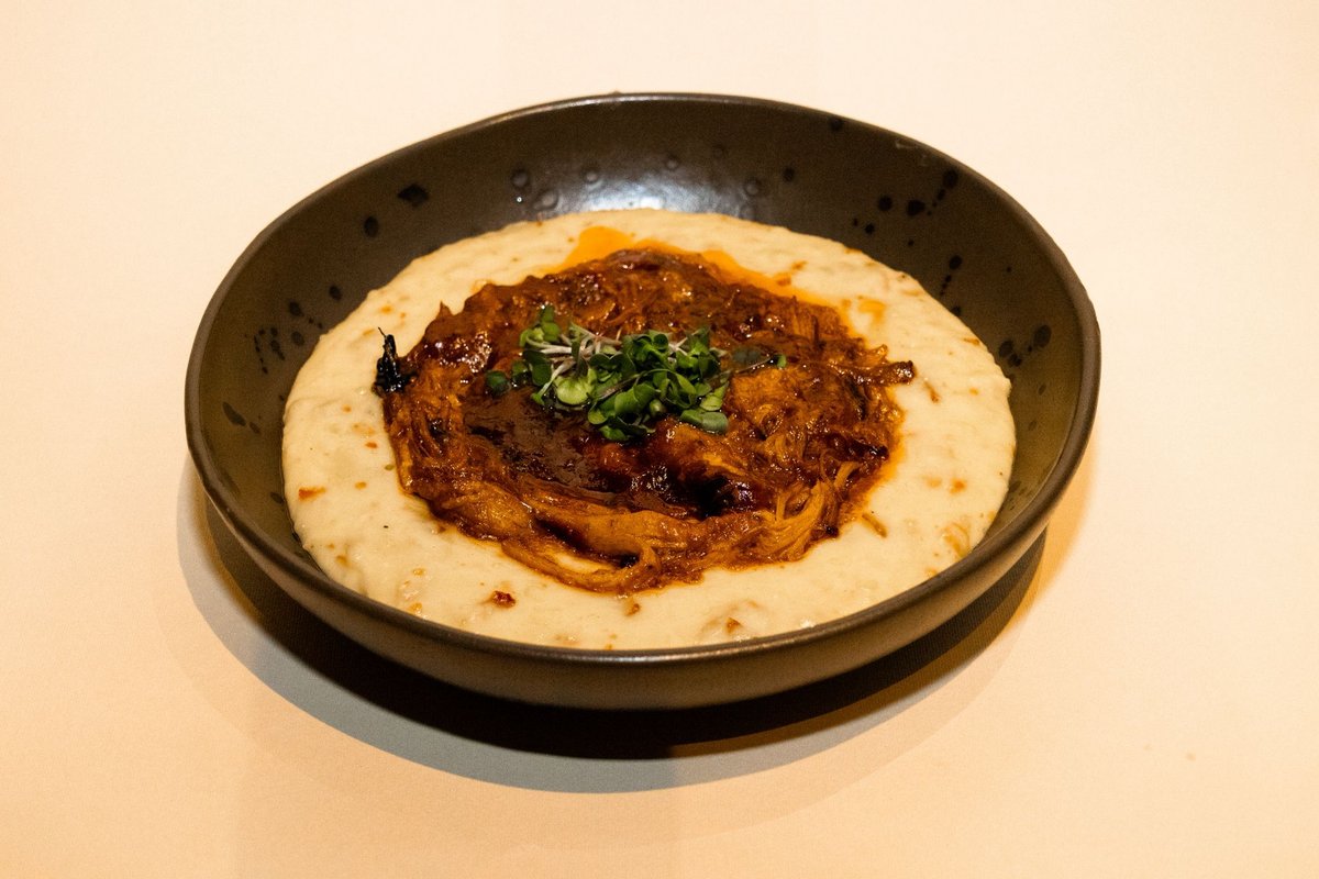 Arborio riža, piletina, goveđa pršuta, tikvice, pečeni badem, neutralna pavlaka