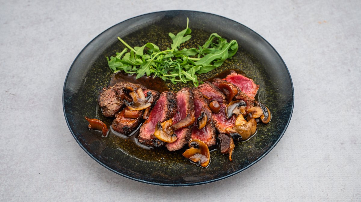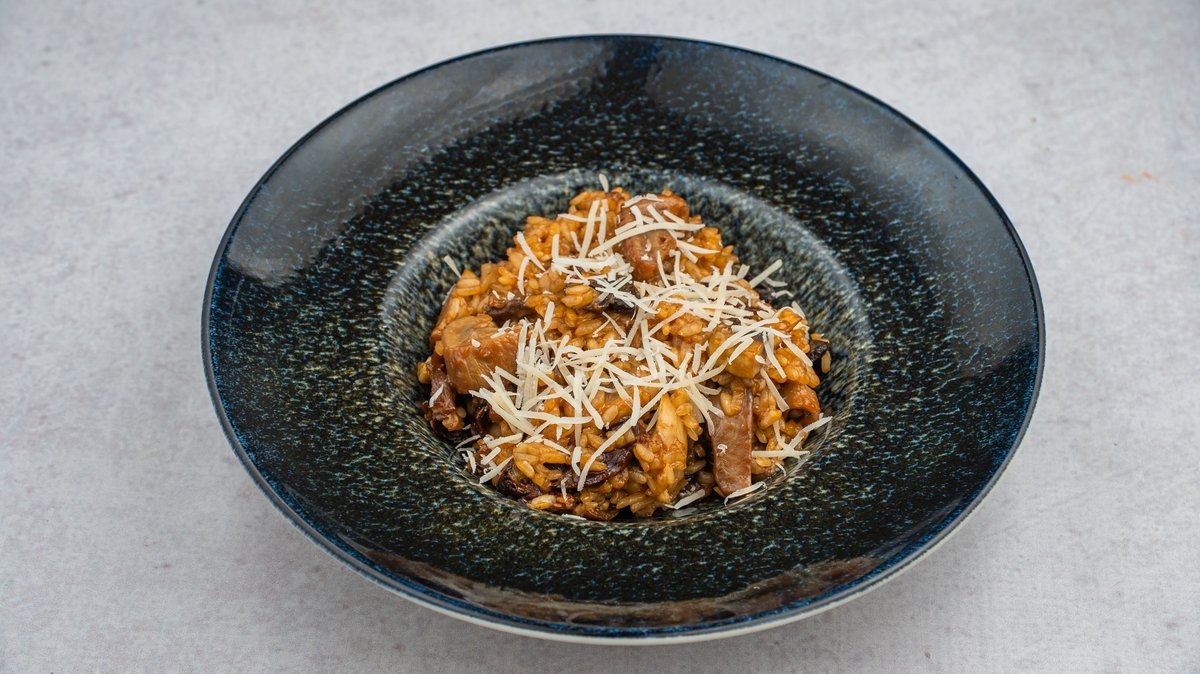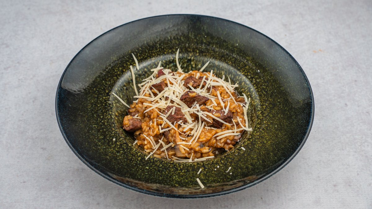 Rižoto sa komadima bifteka i miksom pečuraka, tartufatom i soja sos