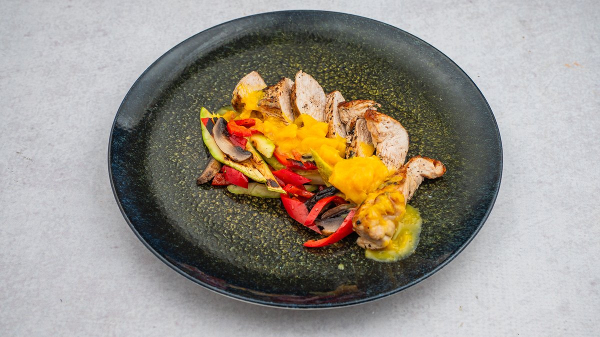 Ćureća taljata na sotiranom povrću sa sosom od pomorandže.