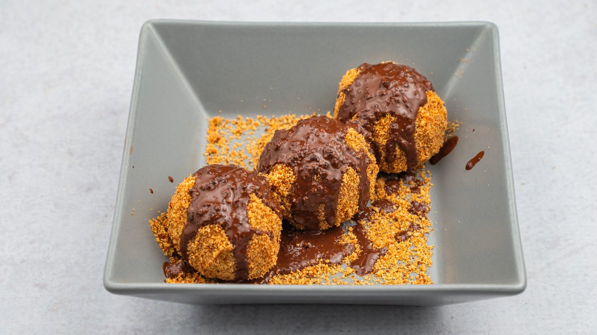 Ovsene pahuljice, banana, mleko, jaja, protein čokolada.