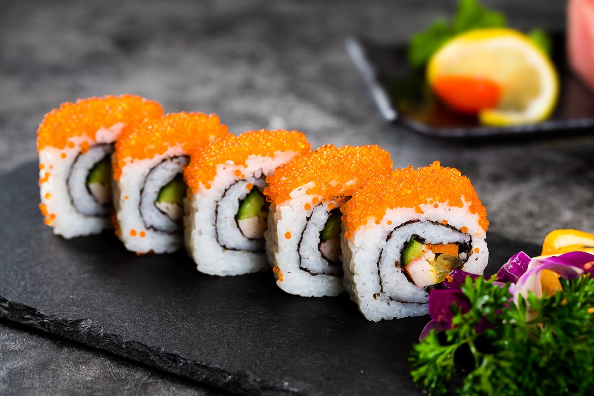Losos, avokado,krastavac, japanska repa, kraba, sjemenke susama, riža za suši, nor