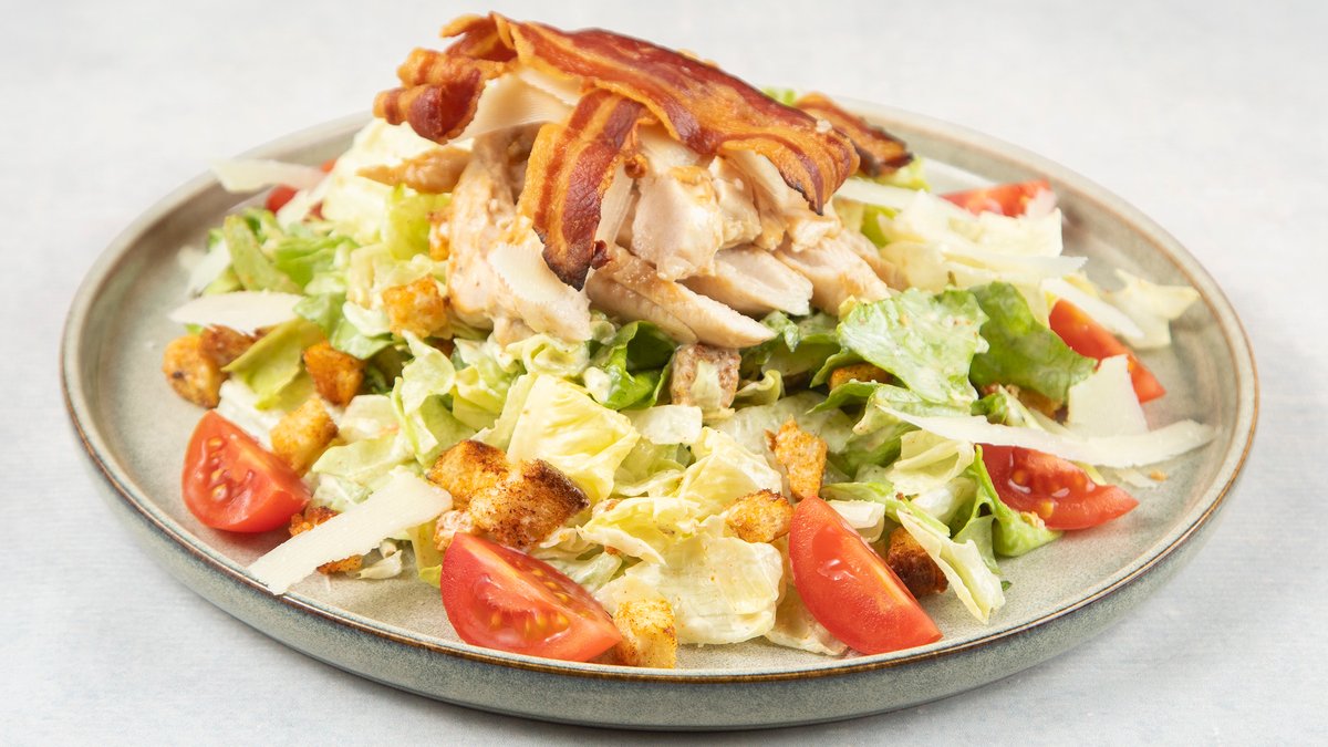 Piletina, pančeta, kačkavalj, parmezan, iceberg, čeri, majonez, senf, pomfrit