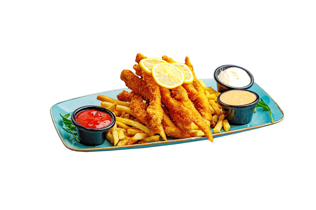 Pileći file, iceberg salata, caesar dressing, kačkavalj, slaninica, pomfrit