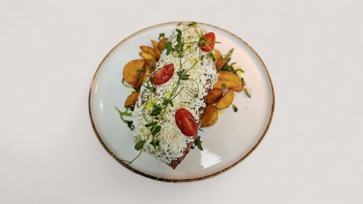 gurmanska pljeskavica zapečena u testu sa wedges krompirom