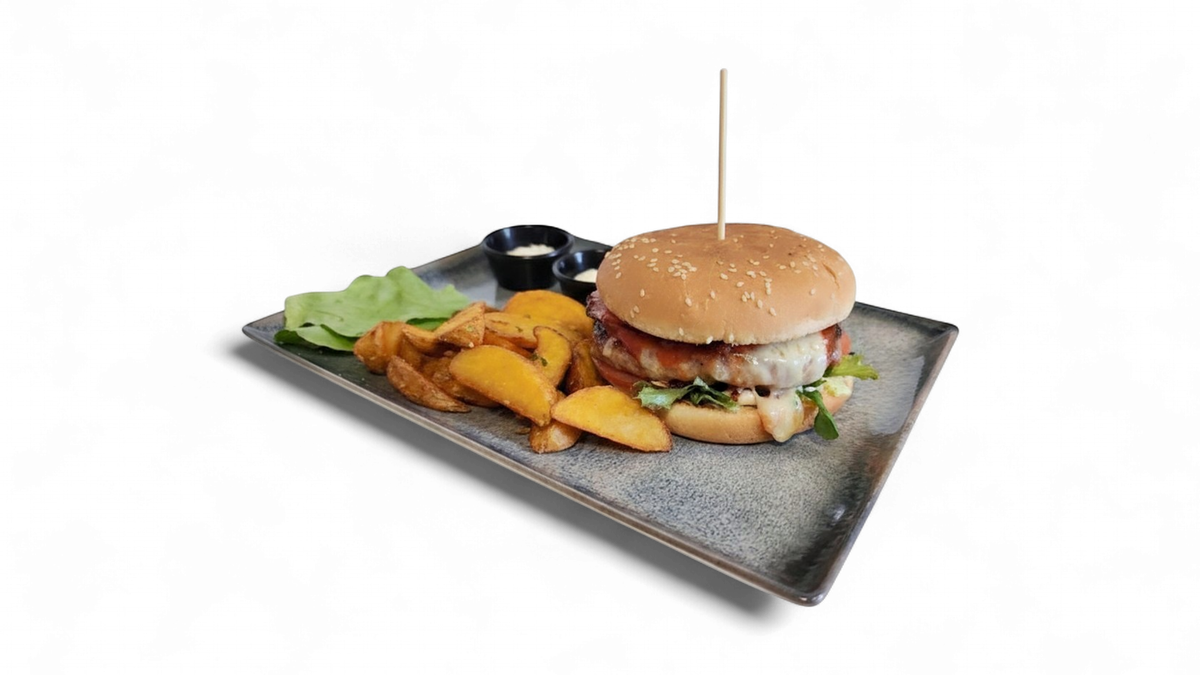 Juneċe meso 180g,majonez,zelena salata,paradajz,luk,slaninica,kačkavalj,kečap