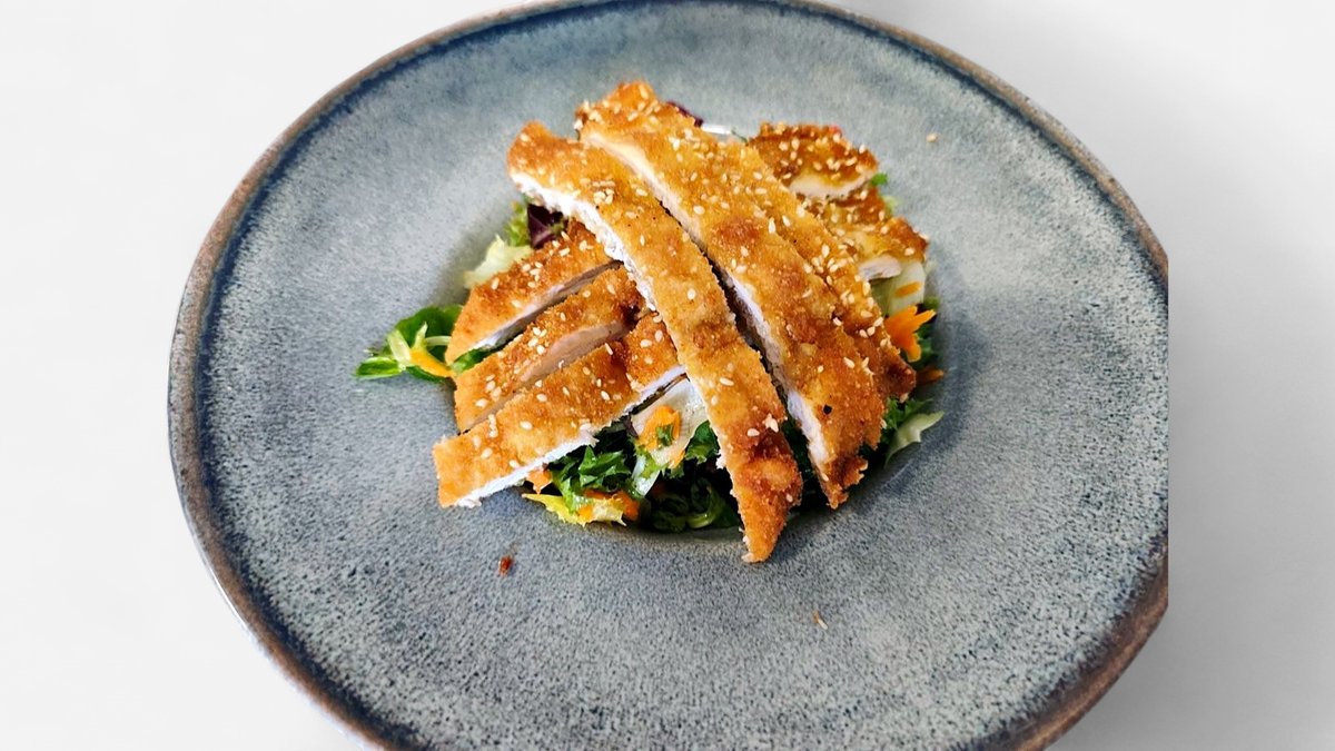 Mix vitamiska salta, pohovana piletina, koktel sos