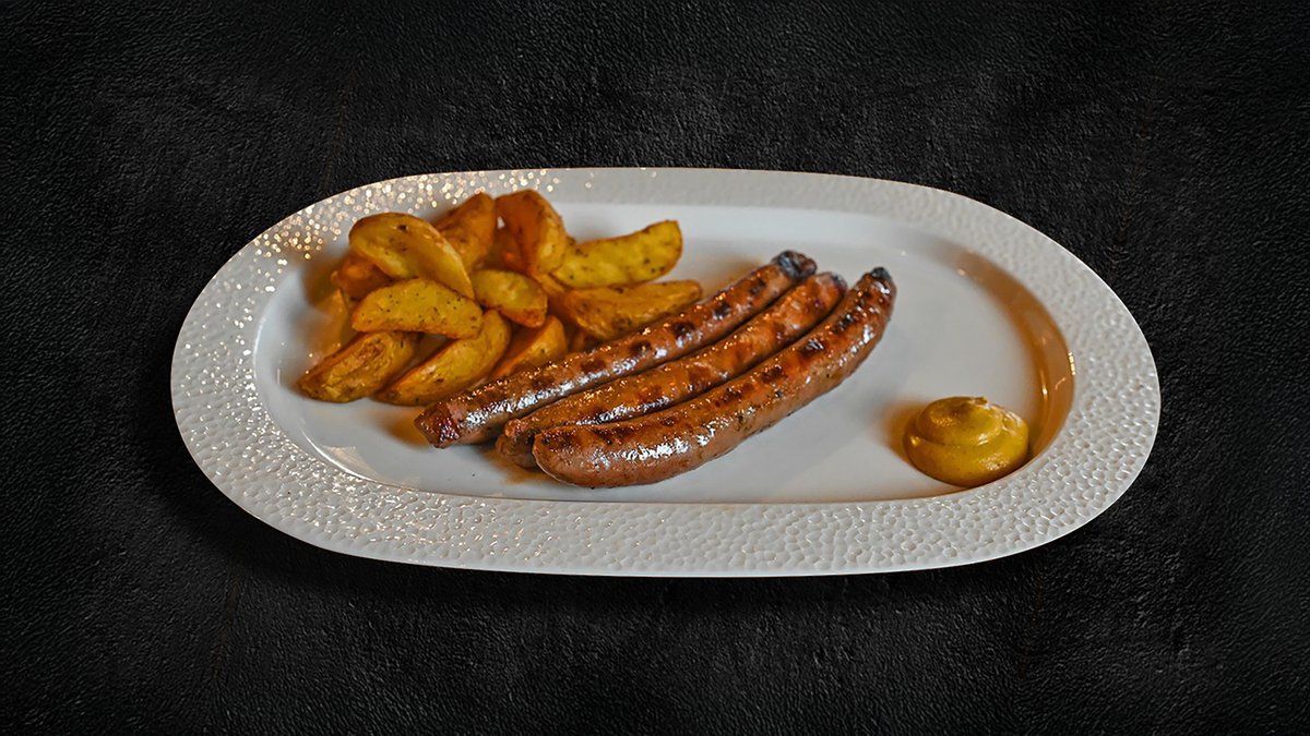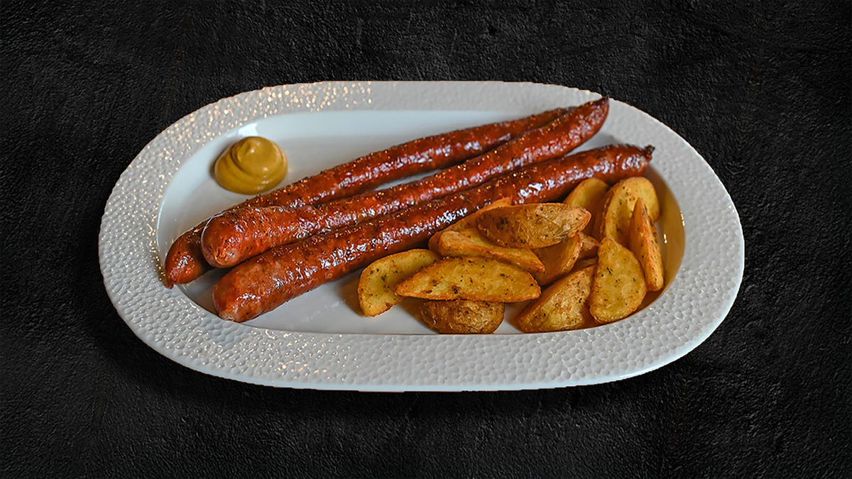 Kobasice od junećeg mesa, začinski krompir, somun, velika porcija, 6 kom