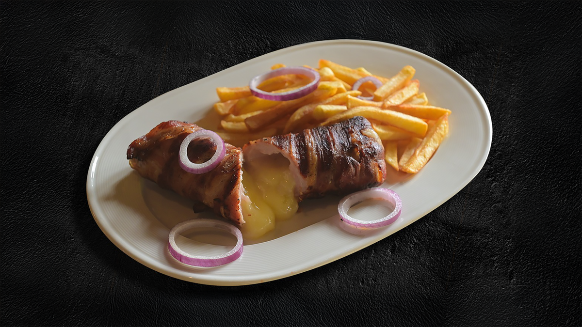 300g juneceg mesa, slanina, sunka, kackavalj, tucana paprika, somun