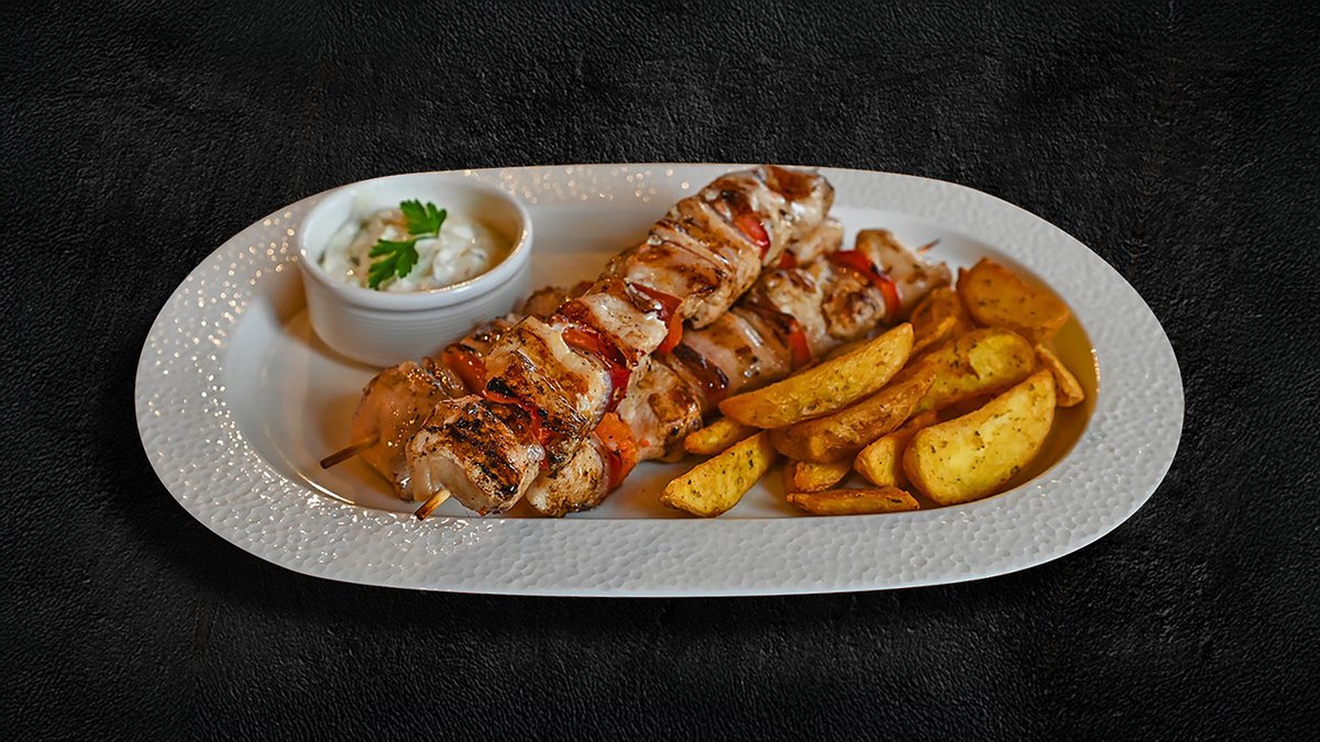 Piletina 300g, začinski krompir, povrće, tzatziki sos, somun