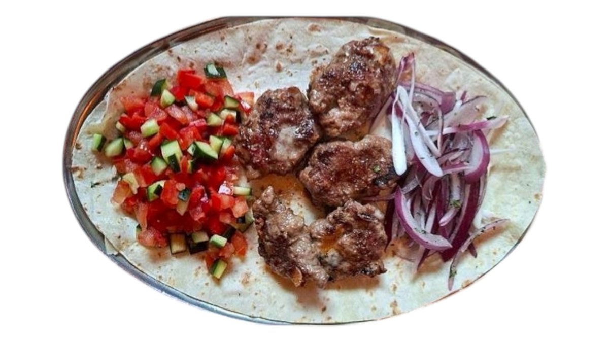 Junece mleveno meso sa kačkavaljem i slaninom, luk, lavaš hleb