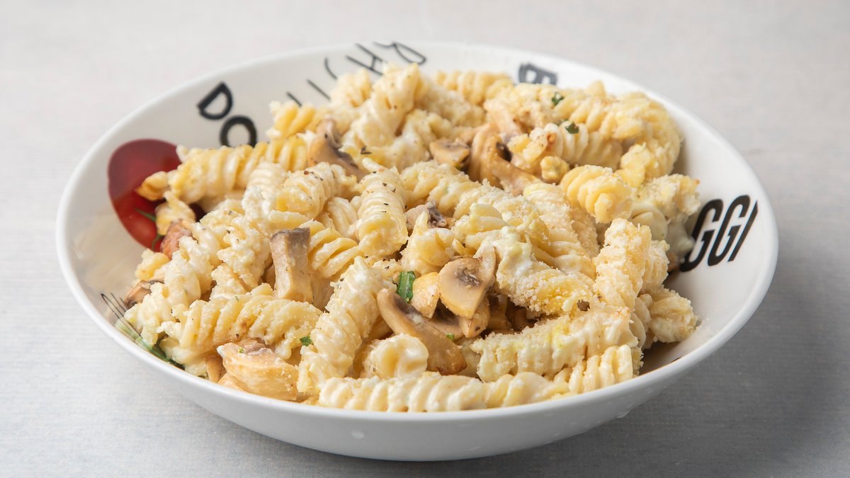 Neutralna pavlaka, šampinjoni, bukovača, origano, biber, maslinovo ulje, parmezan