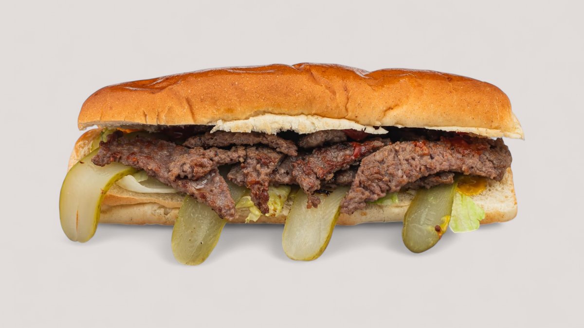 Juneće meso 150g, iceberg salata, kiseli krastavčići, kečap, mustard barbecue sos