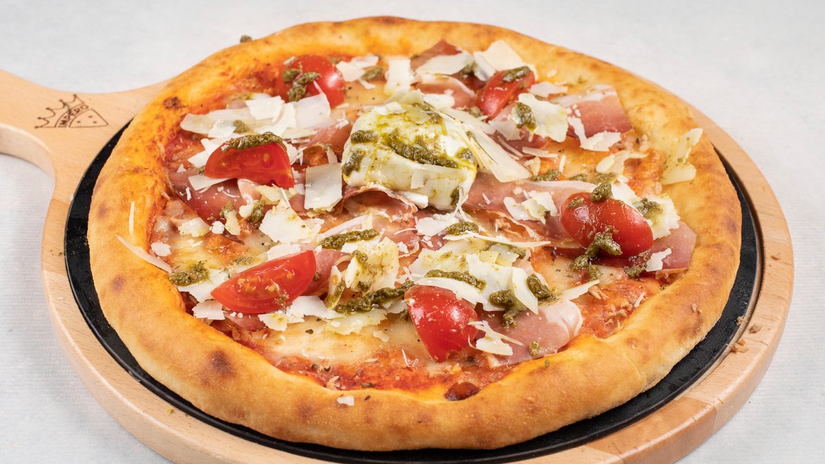 parmezan, mozzarella, pršuta, pesto, čeri paradajz, burrata, bosiljak