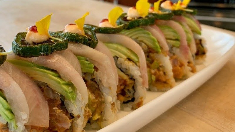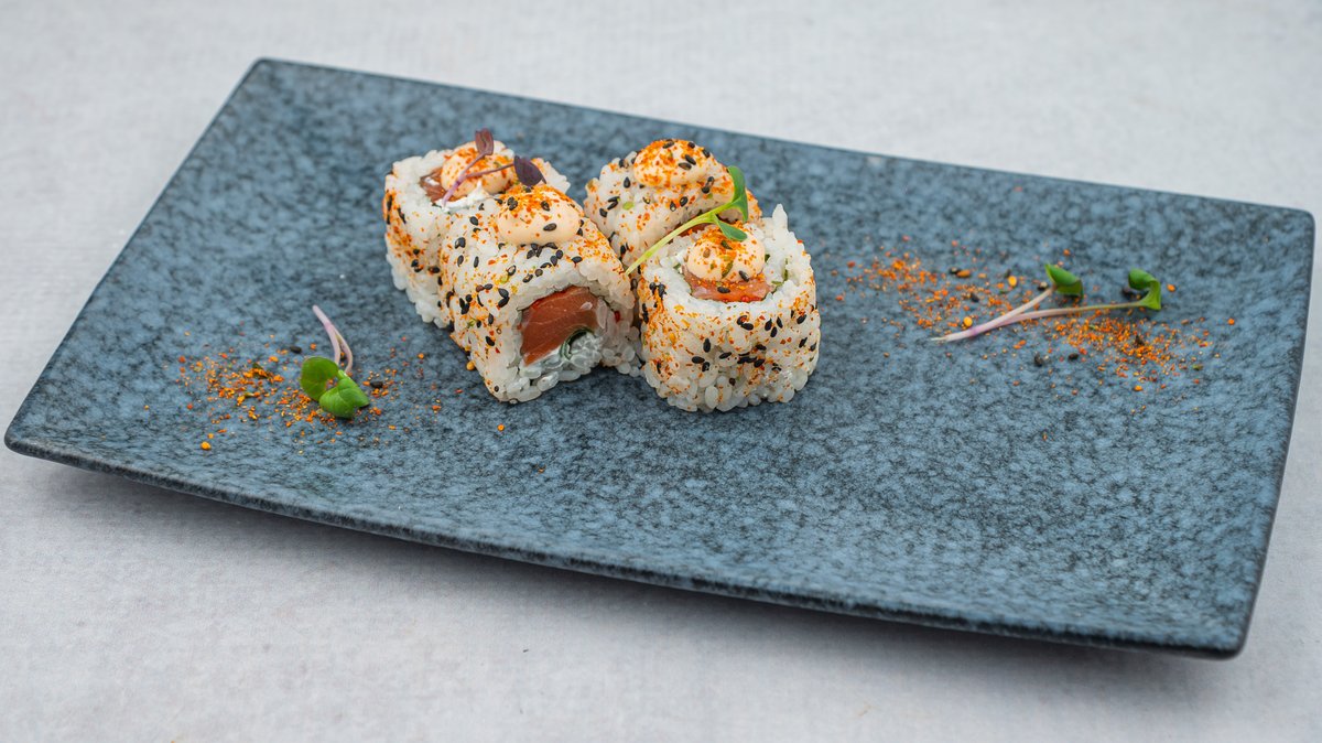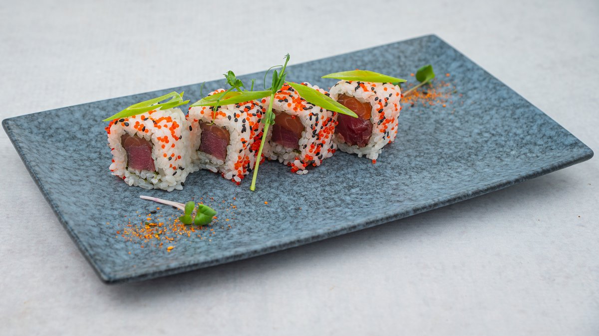 losos tuna, krastavac, avokado, tobiko, 10 komada. Napomena: sve futomaki rolnice mogu бiti u tempuri sa dodatkom terijaki sosa