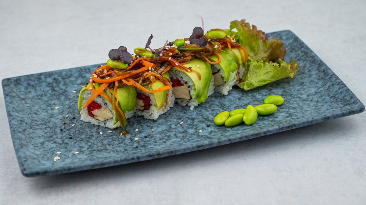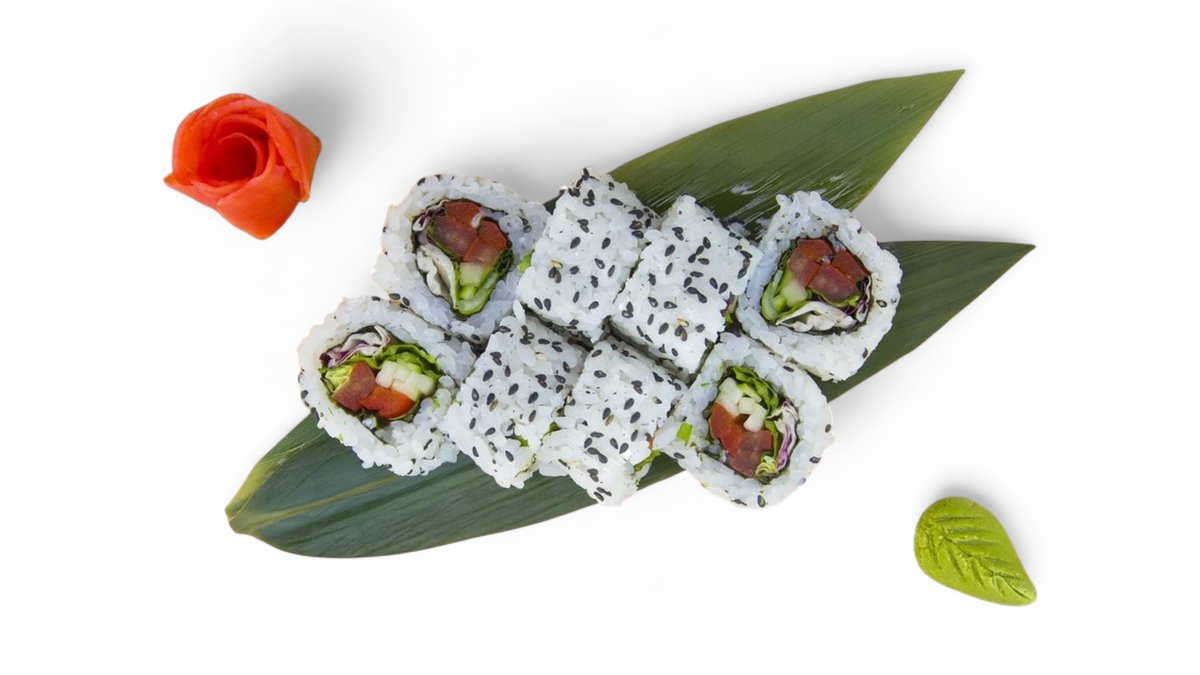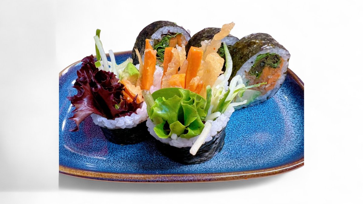 krastavac, avokado, rukola, paprika, susam, šargarepa, buldog sos, 10 komada. Napomena: sve futomaki rolnice mogu biti u tempuri sa dodatkom terijaki sosa