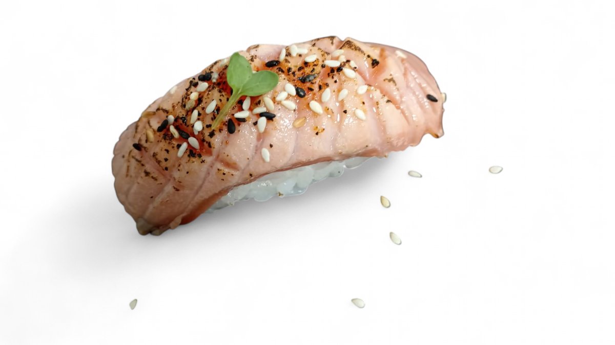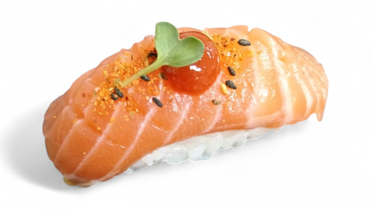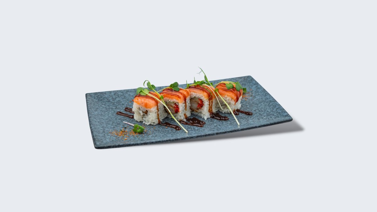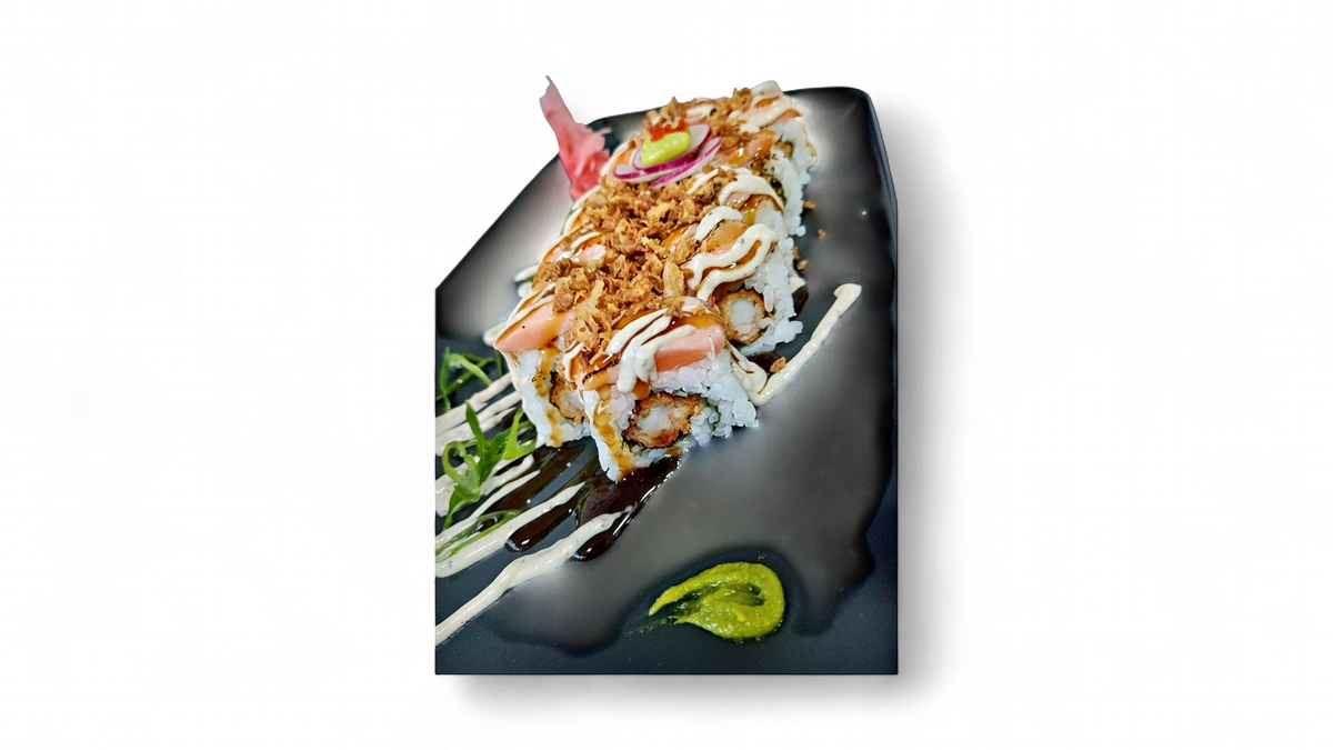 Flambirani losos, tempura gambori,tartuf majonez, terijaki, hrskavi luk