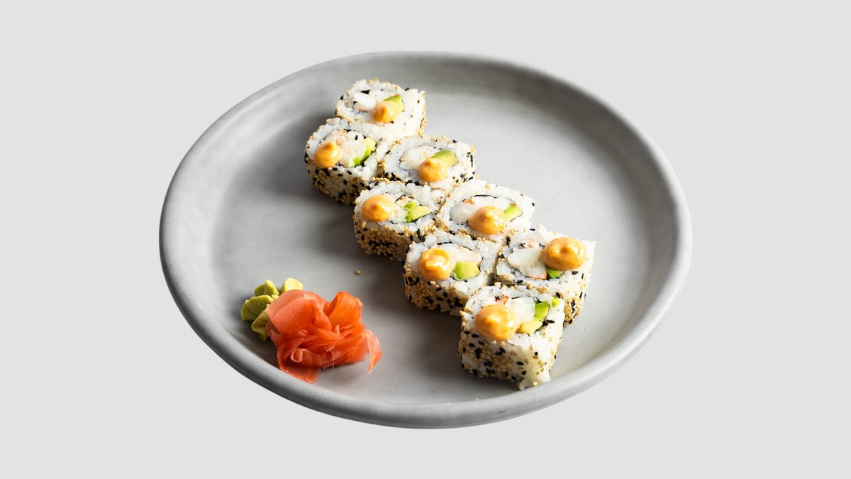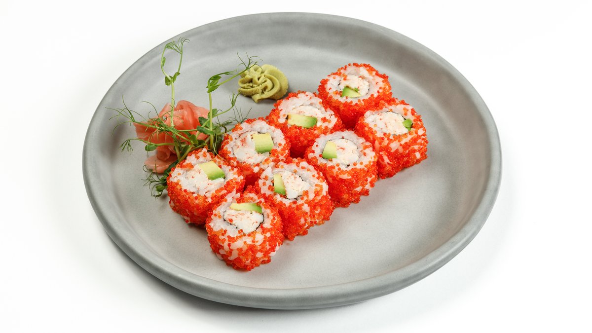 Crab sticks, avocado, Japanese mayo, Tobiko